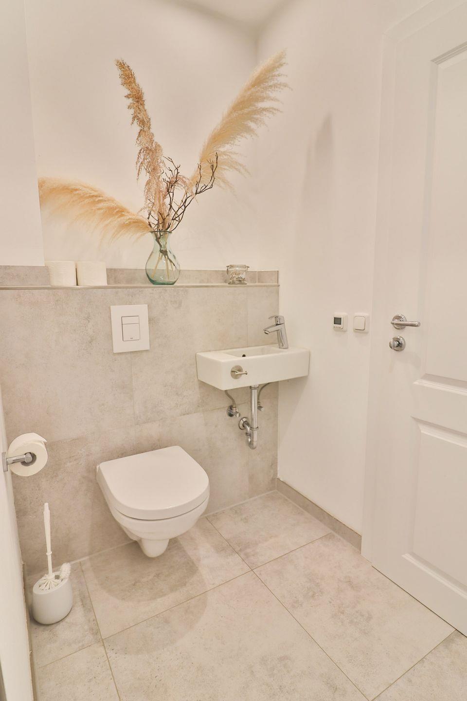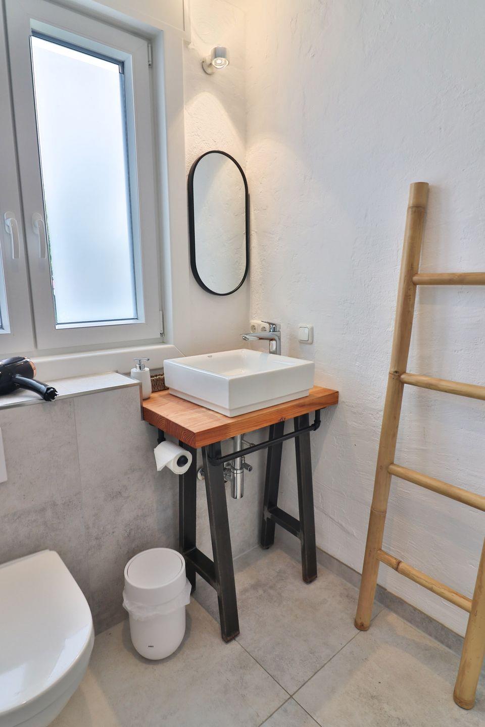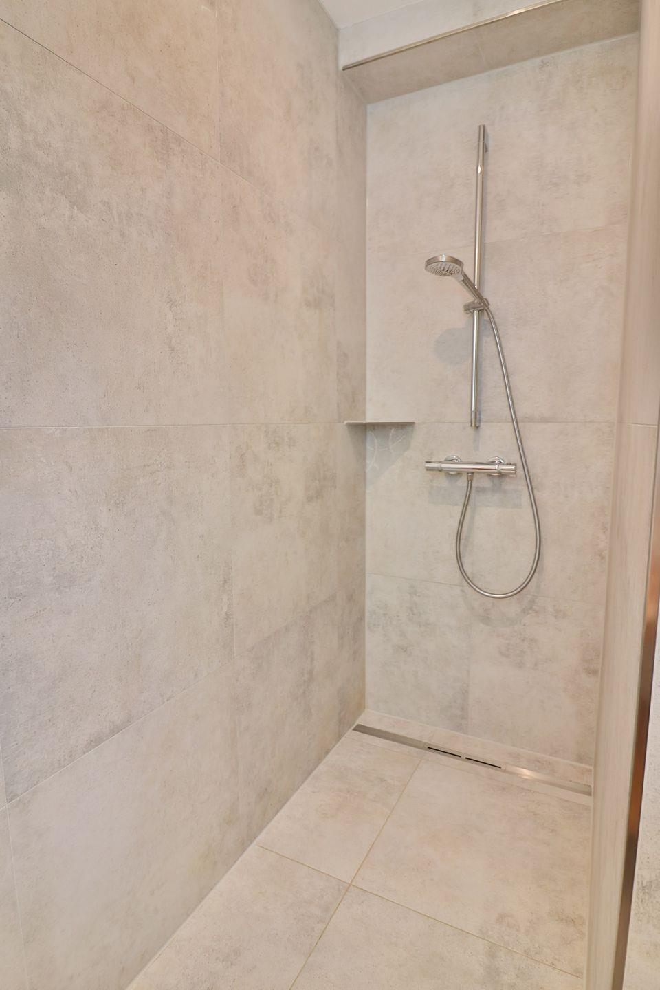 Drei geschmackvoll eingerichtete Schlafzimmer sorgen für erholsame Nächte: Ein Zimmer verfügt über ein Doppelbett (ca. 180 x 200 cm), ein weiteres über zwei Einzelbetten (je 90 x 200 cm) und ein drittes über ein Etagenbett für Kinder (je 90 x 200 cm). Alle Schlafzimmer sind mit Kleiderschränken ausgestattet und verfügen über Außenrollos, die für angenehme Dunkelheit und Privatsphäre sorgen. Zwei moderne Badezimmer, jeweils mit bodengleicher, offener Dusche, Waschbecken und WC, bieten zusätzlichen Komfort und ausreichend Platz für alle Gäste.