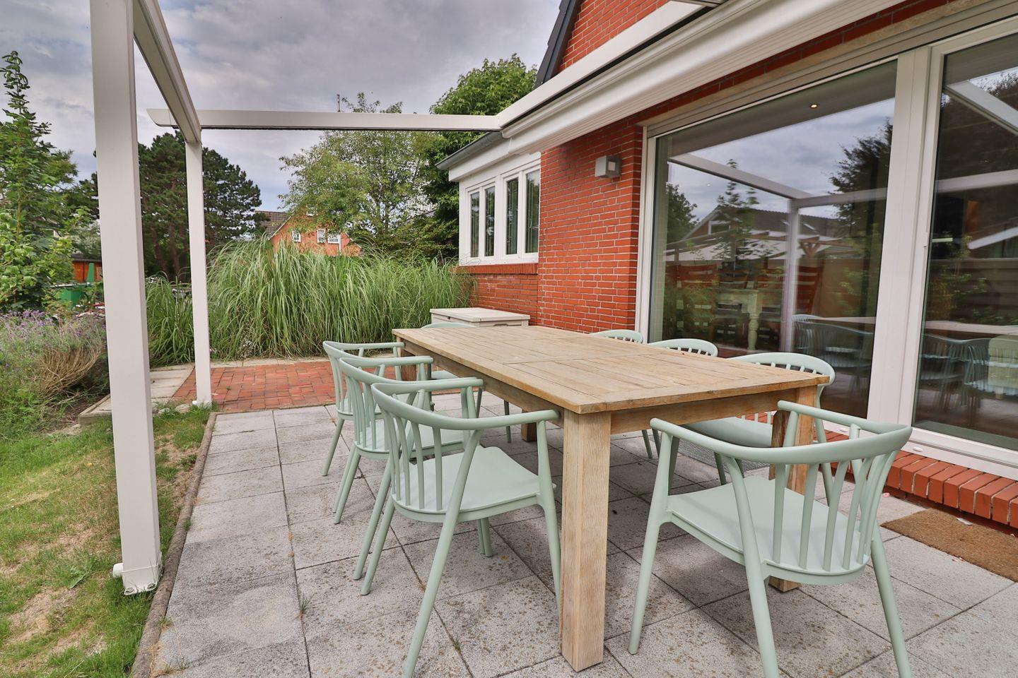 Vom Wohnbereich aus gelangen Sie direkt auf die sonnige Süd-Terrasse, die sich perfekt für ein entspanntes Frühstück oder einen gemütlichen Abend an der frischen Nordseeluft eignet.