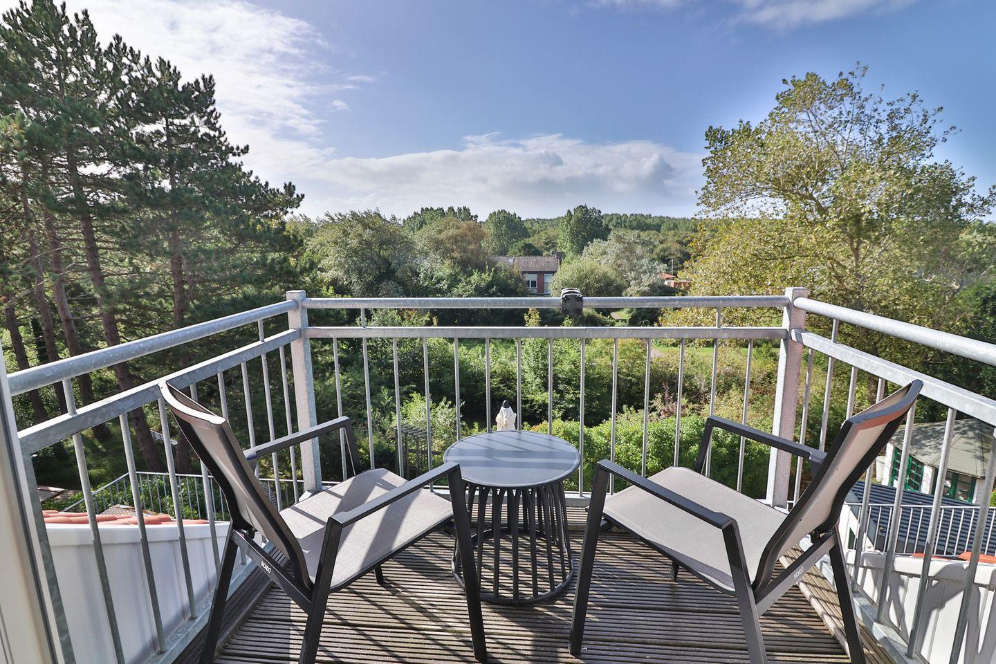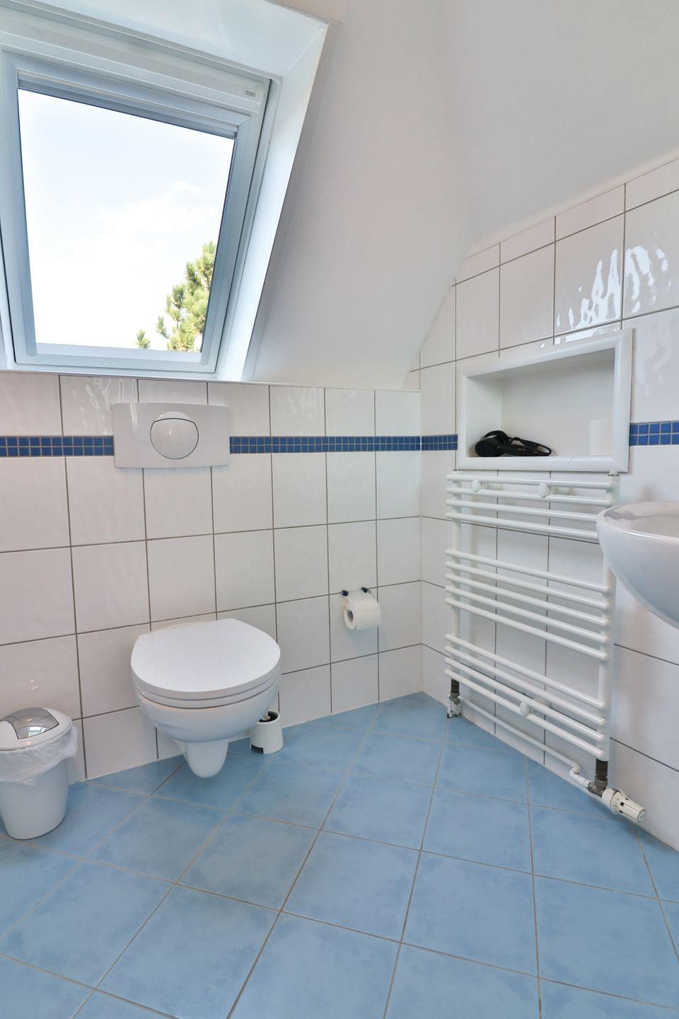 Ein absolutes Highlight der Ferienwohnung ist der nach Süden ausgerichtete Dachbalkon, der mit einer kleinen Sitzgruppe ausgestattet ist und zum Verweilen im Freien einlädt. Von hier aus haben Sie einen herrlichen Fernblick über den Inselwald, die nähere Umgebung und an klaren Tagen bis zum Festland. Alle Fenster verfügen über Sichtschutz, sodass Ihre Privatsphäre zu jeder Zeit gewährleistet ist. Waschmaschine und Trockner können gemeinschaftlich genutzt werden. Bettwäsche und Handtücher sind im Angebot inbegriffen.