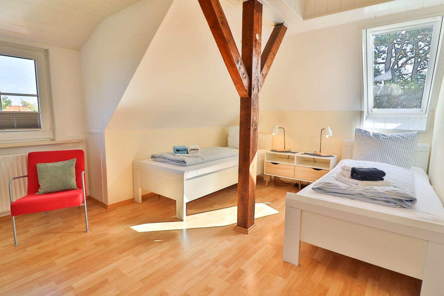 - 2 x Einzelbett (Offenes Fußteil)
