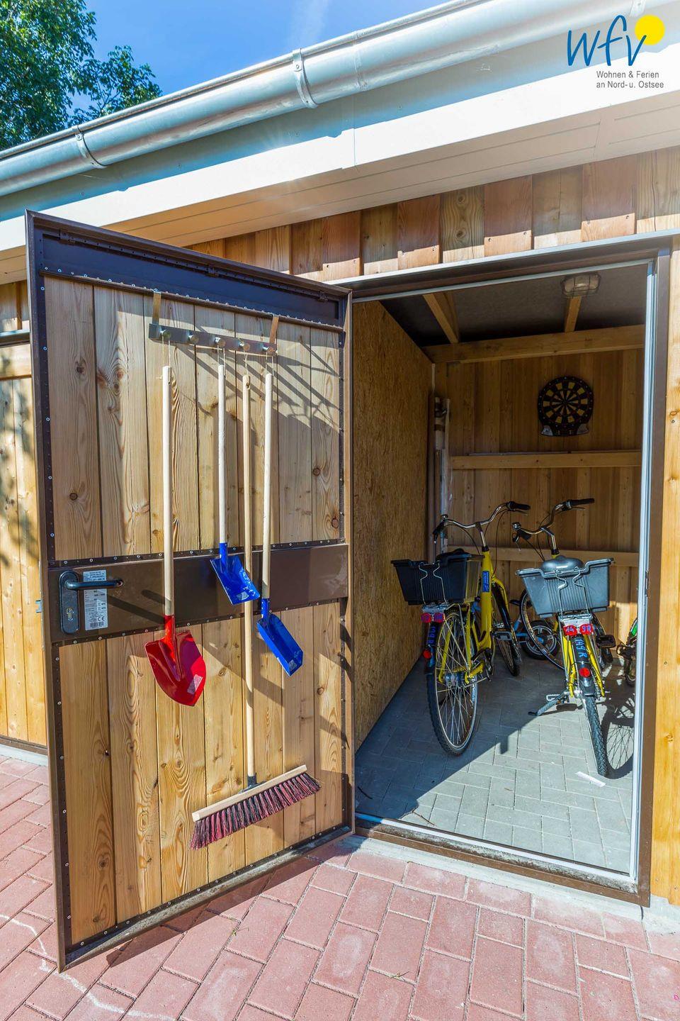 In dem Schuppen neben dem Haus stehen für Sie neben zwei Fahrrädern sowohl Strandspielzeug, als auch zwei mobile Fußballtore und weiteres Spiel-Equipment zur freien Verfügung bereit. Mit den zwei Fahrrädern für Erwachsene können Sie schnell Einkäufe erledigen sowie die schöne Insellandschaft erkunden. Zusätzlich kann der sich dort befindliche Fahrradkarren auch gerne genutzt werden.