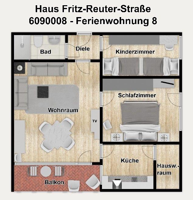 Herzlich willkommen in der charmanten "Ferienwohnung 8" im "Haus Fritz-Reuter-Straße" auf Langeoog! Hier genießen Sie einen Urlaub in strandnaher und zentraler Lage. Nur ein kurzer Spaziergang und Sie sind bereits an der Nordsee. Die Unterkunft bietet Ihnen mit zwei separaten Schlafzimmern, hellem Wohnraum, separater Küche und schönem Balkon einen gemütlichen Erholungsort für bis zu vier Personen. WLAN und TV ergänzen den Wohnkomfort. Wir wünschen Ihnen wunderschöne Ferien an der Nordsee!