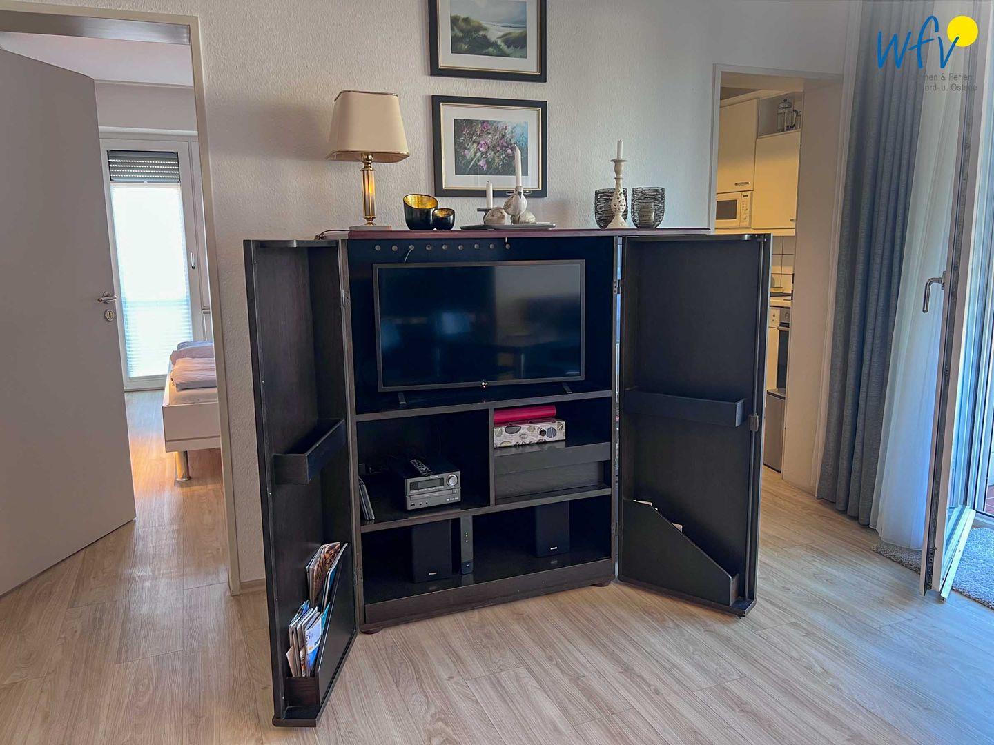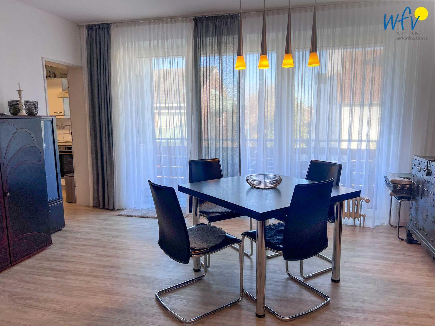 Zur Entspannung nach dem Strandtag oder der Wattwanderung lädt der helle Wohnraum mit Essplatz und Sofaecke sowie TV, DVD-Player und CD-Player ein. Oder Sie genießen auf dem Balkon erholsame Stunden - mit einem Buch und dem schönen Ausblick in die ruhige Umgebung. Ein wunderbares Urlaubsgefühl!