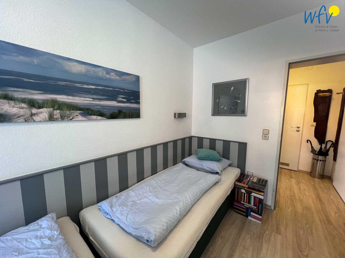 Wenn auf Langeoog die Sonne untergeht, bieten Ihnen zwei separate Schlafzimmer einen wohligen Rückzugsort. Das Elternschlafzimmer ist mit einem Doppelbett ausgestattet (180 cm x 200 cm), das Kinderzimmer mit zwei Einzelbetten (je 90 x 190 cm). Für Ihre Urlaubsgarderobe sind geräumige Kleiderschränke vorhanden, zudem befindet sich im Elternschlafzimmer ein TV.