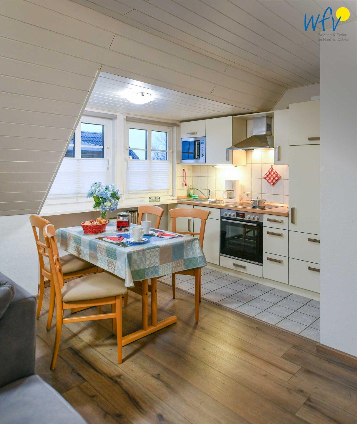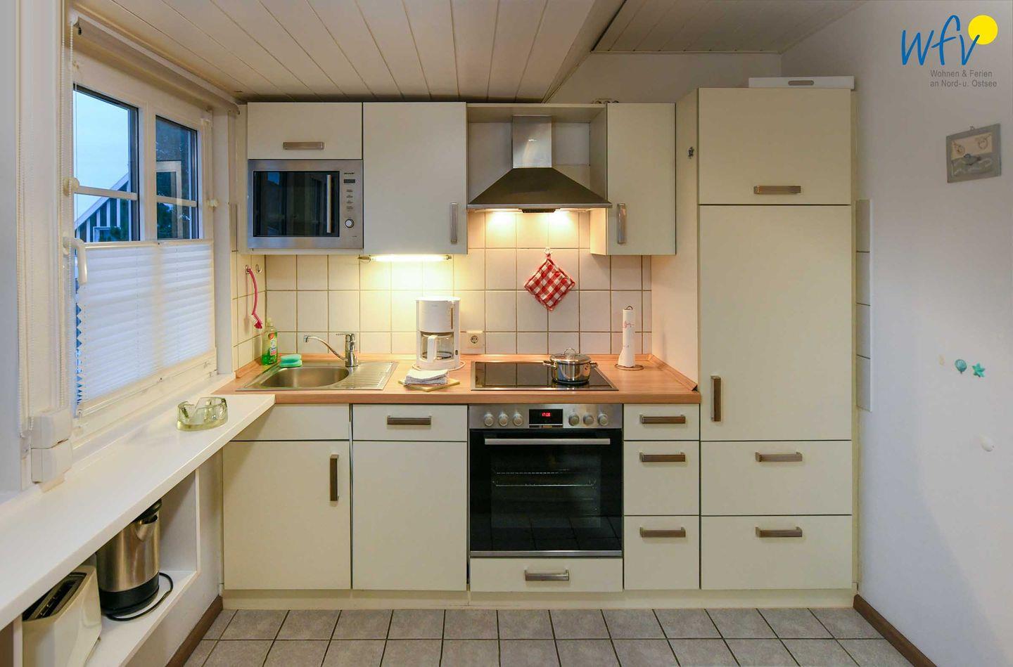 Für warme Frühstücksbrötchen, den Snack zwischendurch oder das leckere Abendessen ist die offene Küche komplett ausgestattet. Sie verfügt u.a. über einen Vier-Platten-Ceranherd mit Backofen, eine Mikrowelle und einen Geschirrspüler sowie über diverse Kleingeräte.
