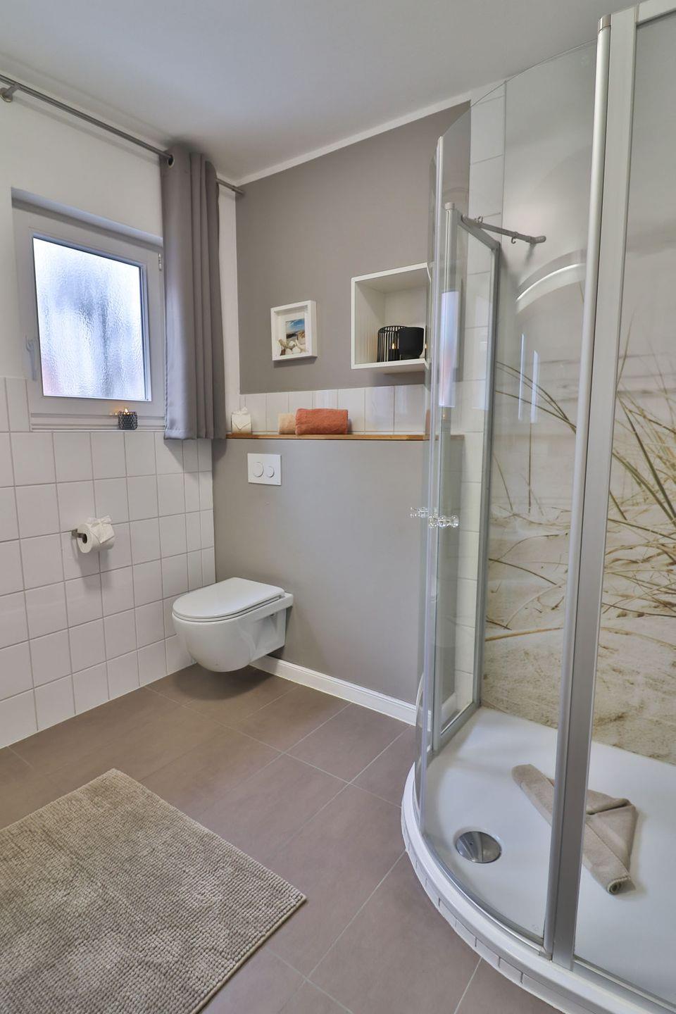 Das helle Tageslichtbad bietet Dusche, WC und Waschbecken. Spiegel, Kosmetikspiegel und Haartrockner stehen selbstverständlich für Sie bereit.