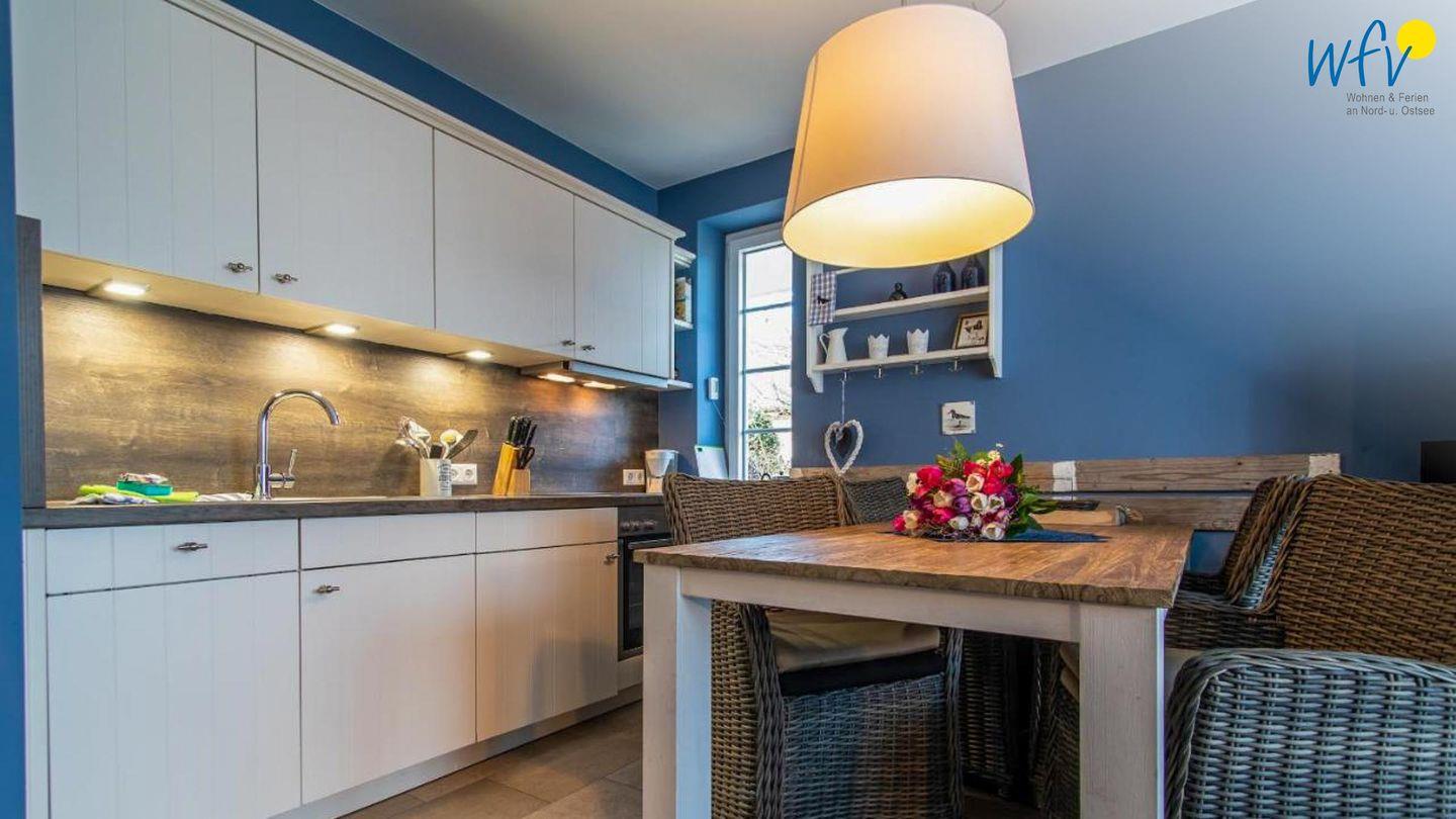 Snacks für den Ausflug oder leckere Gerichte lassen sich schnell und einfach in der modernen offenen Küche zubereiten. Sie ist u.a. mit Cerankochfeld, Backofen, Kühlschrank mit Gefrierfach und Spülmaschine sowie Kaffeemaschine, Wasserkocher, Toaster und Mixer ausgestattet. So können Sie Ihre Mahlzeiten flexibel planen und bequem am Esstisch genießen.