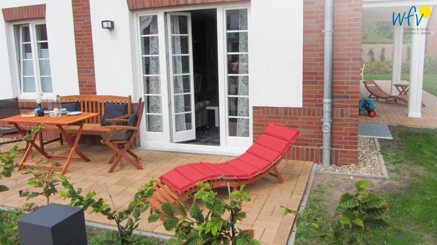 Wohltuende Nordseeluft buchen Sie bei uns inklusive: Drei sehr schöne wohnungseigene Terrassen laden mit Gartenmöbeln, Sonnenliegen und Strandkorb zum ausgiebigen Entspannen ein - ein wunderbares Urlaubsgefühl. Teilweise sind die Terrassen überdacht, sodass auch ein Aufenthalt bei leicht regnerischem Wetter möglich ist. Ein angrenzender Gartenbereich bietet Platz zum Spielen.