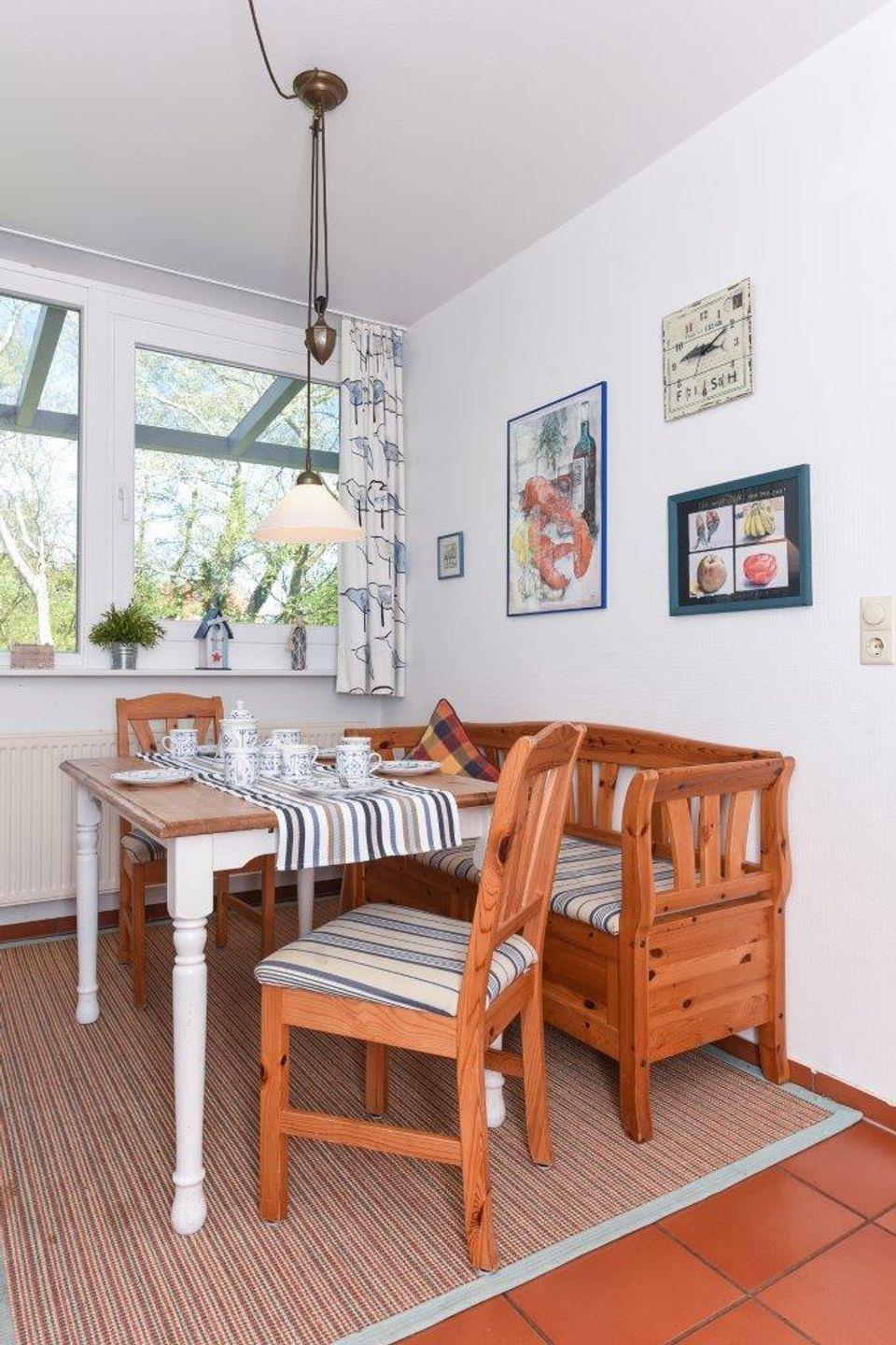 Die separate Küche ist voll ausgestattet und bietet zusätzlich einen weiteren Essplatz. Sie ist modern und funktional gestaltet und verfügt über alle notwendigen Geräte, um auch größere Mahlzeiten zu zaubern.