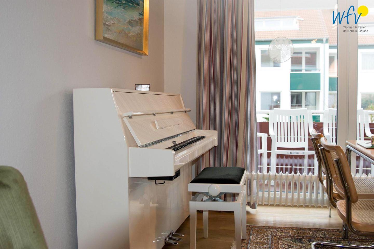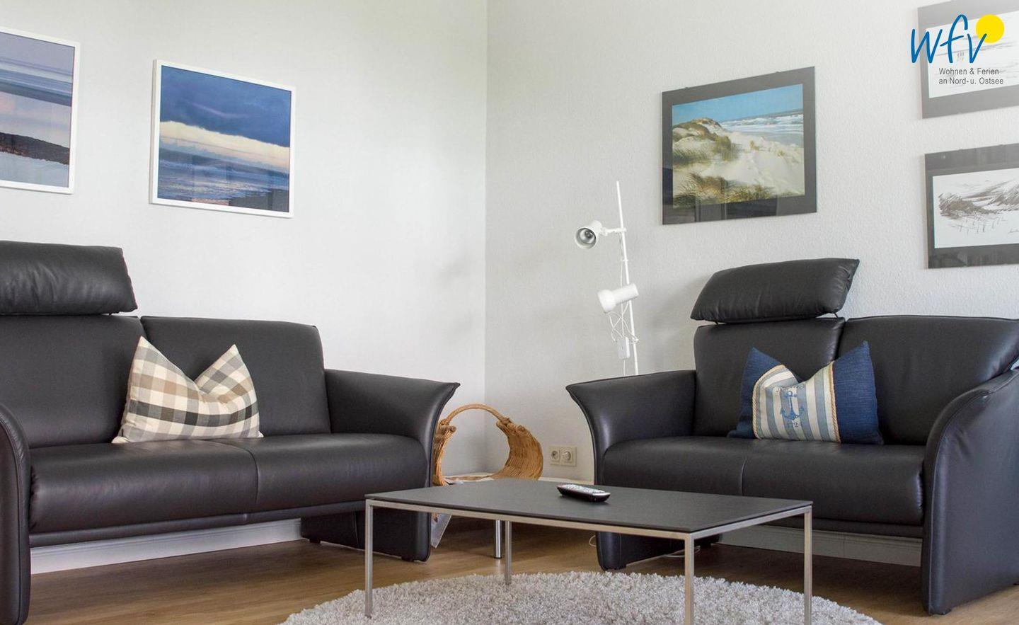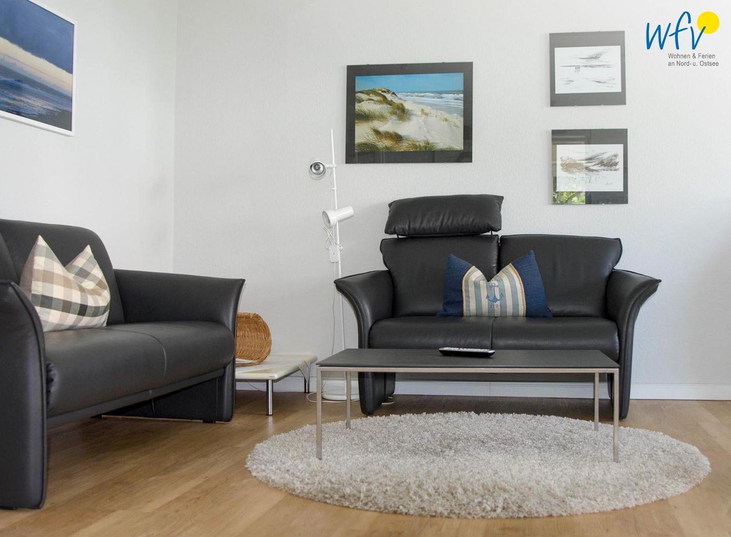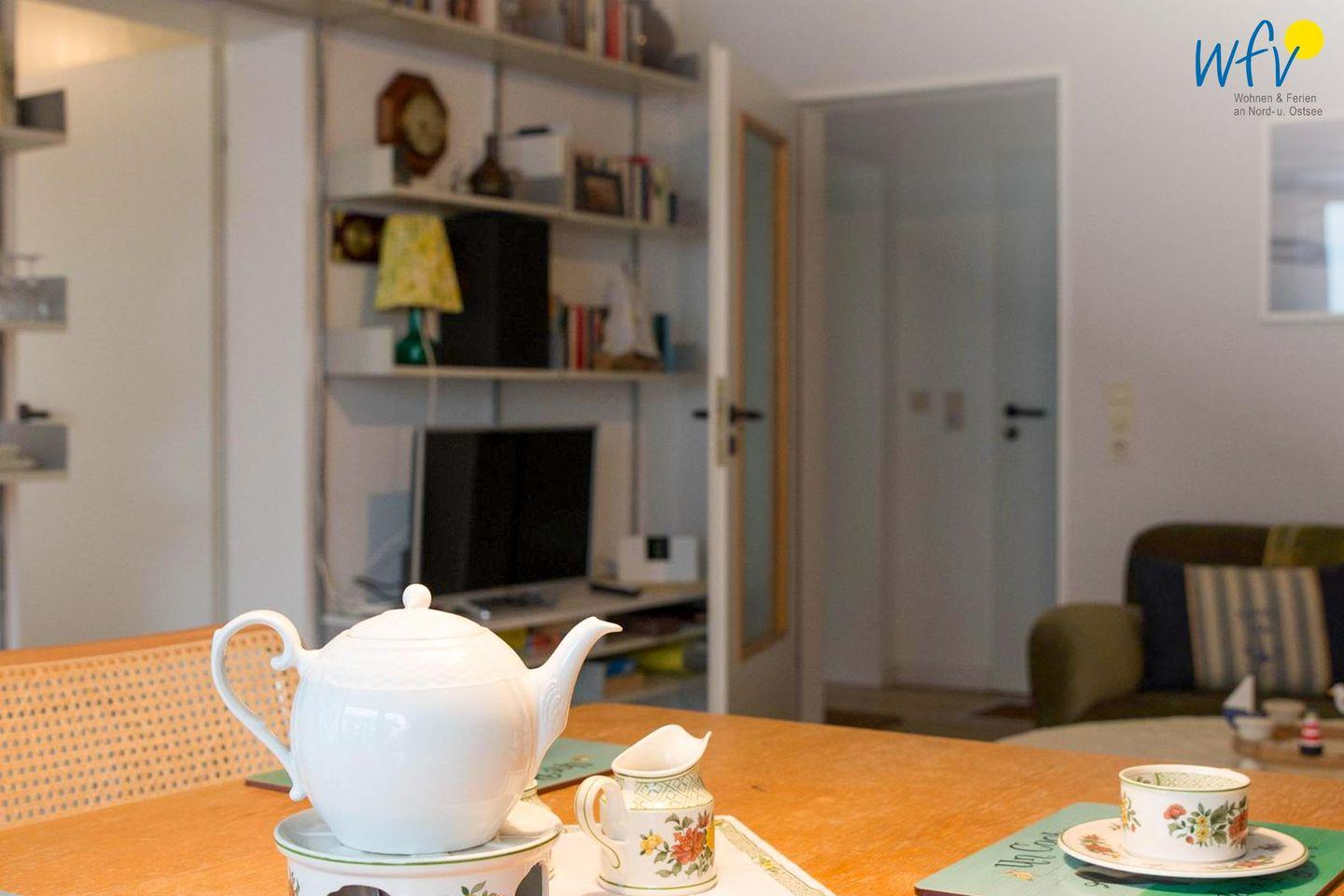 Der Wohnbereich ist mit Laminat ausgelegt und verfügt über einen Essbereich mit Esstisch. Für Ihre Unterhaltung stehen Ihnen ein TV, Radio, CD-Spieler, DVD-Spieler sowie CDs und DVDs zur Verfügung. WLAN und Internet sind ebenfalls vorhanden, sodass Sie auch während Ihres Aufenthalts bequem online bleiben können. Eine Garderobe ergänzt die alltagstaugliche Ausstattung der Wohnung.