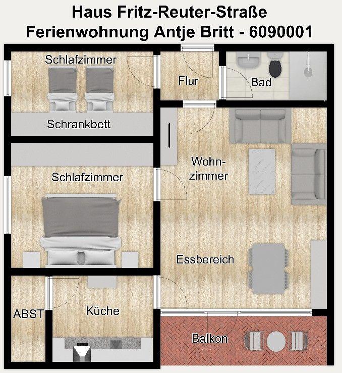 Die Ferienwohnung Antje Britt im Haus Fritz-Reuter-Straße bietet Ihnen auf 70 m² eine komfortable Unterkunft für bis zu 4 Personen. Mit insgesamt 3 Zimmern und der Lage im Parterre eignet sich die Nichtraucherwohnung besonders für Gäste, die Wert auf bequemes Wohnen und eine praktische Raumaufteilung legen. Kinder sind willkommen, sodass sich die Unterkunft auch gut für einen Aufenthalt mit der Familie anbietet.