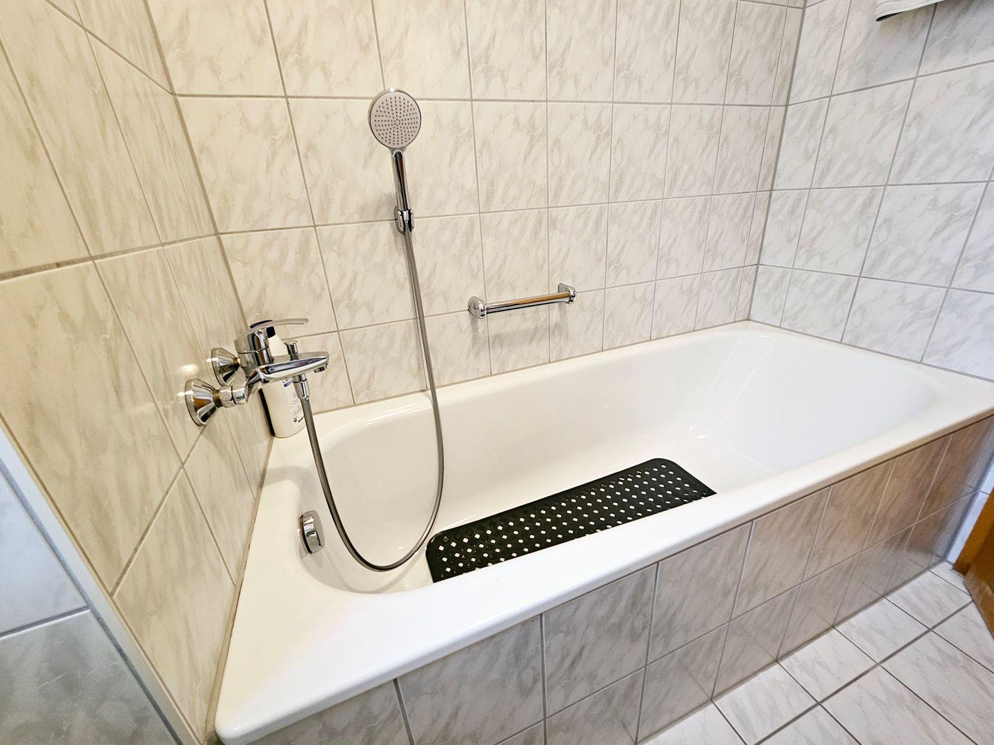 Das Badezimmer, ist mit einer Badewanne mit Dusche und einem Waschbecken ausgestattet. Sie können sich nach einem aktiven Tag im Freien erholen und dabei den Blick auf die atemberaubende Natur genießen, die die Ferienwohnung umgibt.