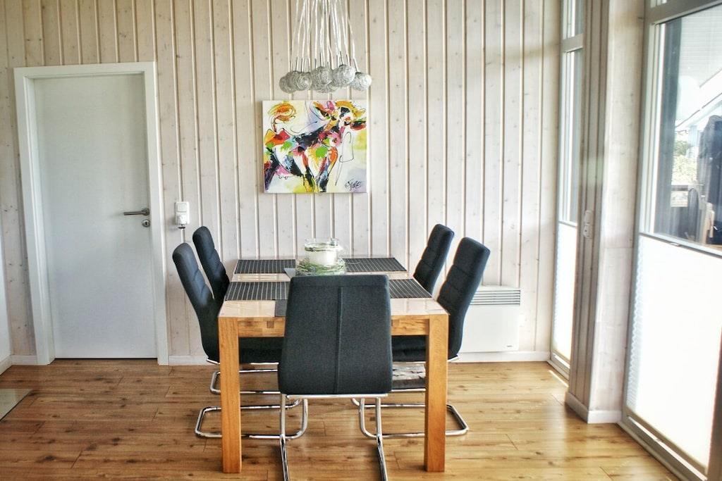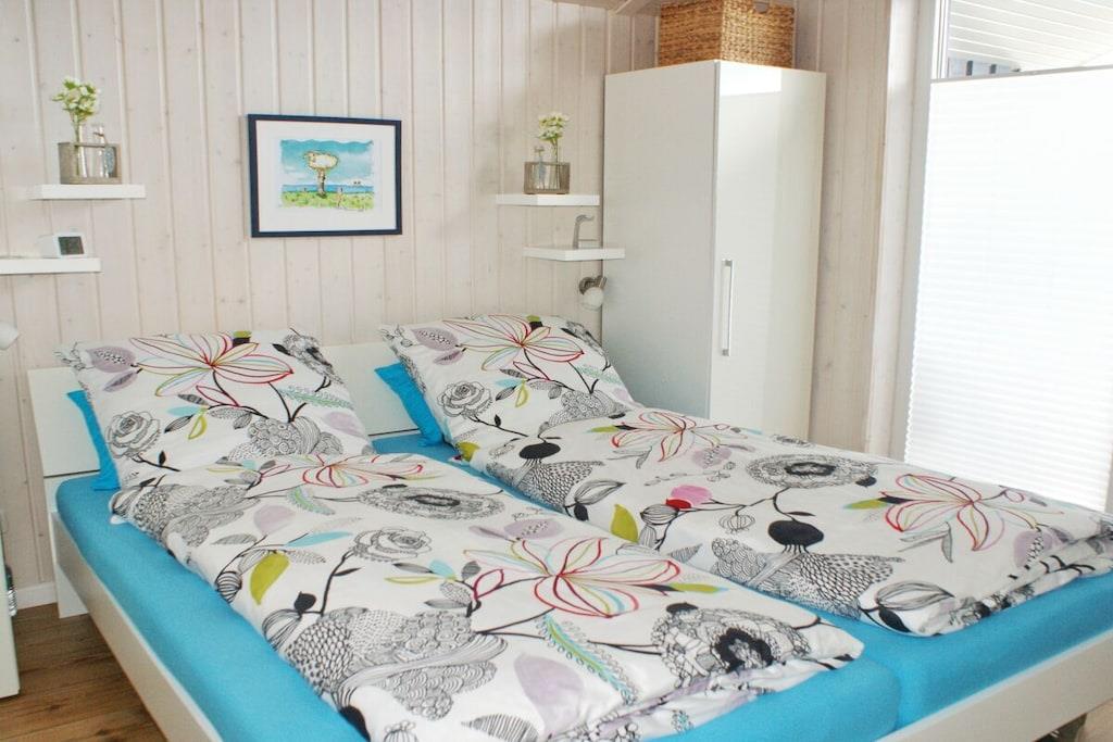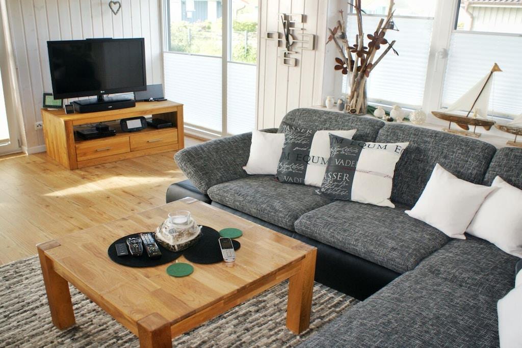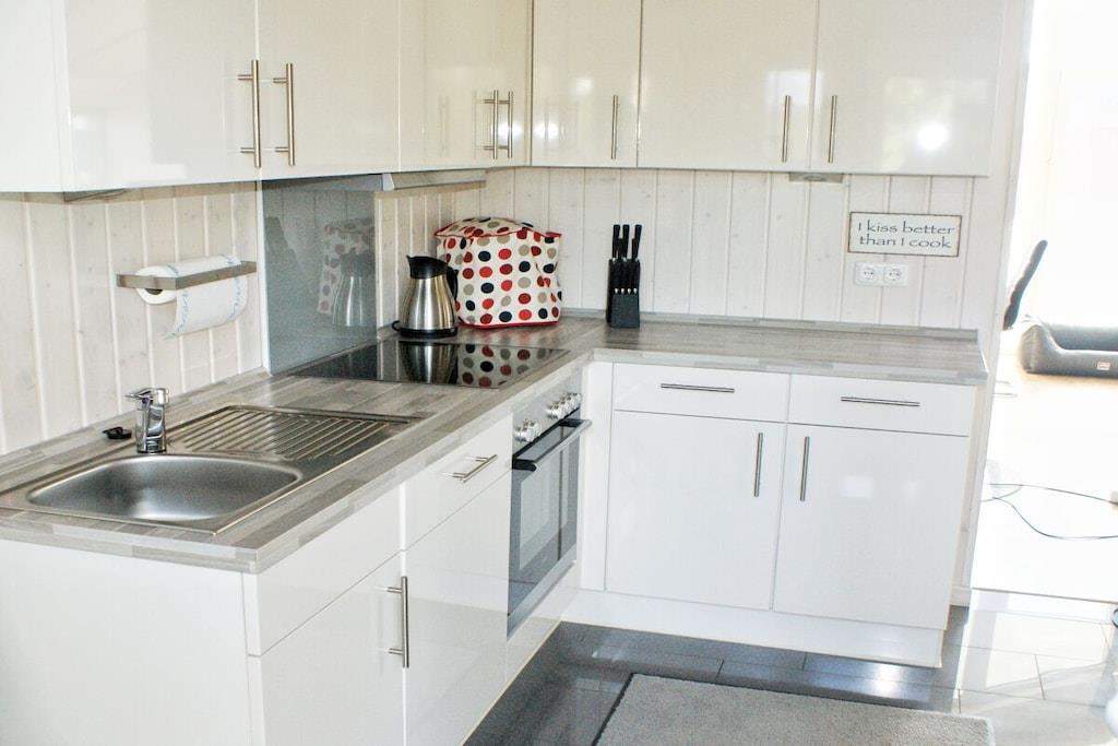 Feriehuset "Nordseebrise" er smagfuldt møbleret og tilbyder rigelig plads til op til fire personer med to soveværelser (et med en dobbeltseng på 1,80 m, det andet med en dobbeltseng på 1,60 m). En hems (en "Hems" med ekstra soveplads) er tilgængelig på eget ansvar. Det kvalitetsudstyrede køkken er fuldt udstyret. Den åbne stue og spisestue har en brændeovn, en komfortabel sofa og et spisebord til op til fem personer. Et fladskærms-tv, stereoanlæg/cd-afspiller og dvd-afspiller fuldender faciliteterne. Det rummelige badeværelse tilbyder vores gæster en sauna, et spabad og en bruseniche. En vaskemaskine og tørretumbler er også tilgængelige til hurtig tøjvask. Bemærk venligst, at kæledyr ikke er tilladt i sofaen eller sengene.
