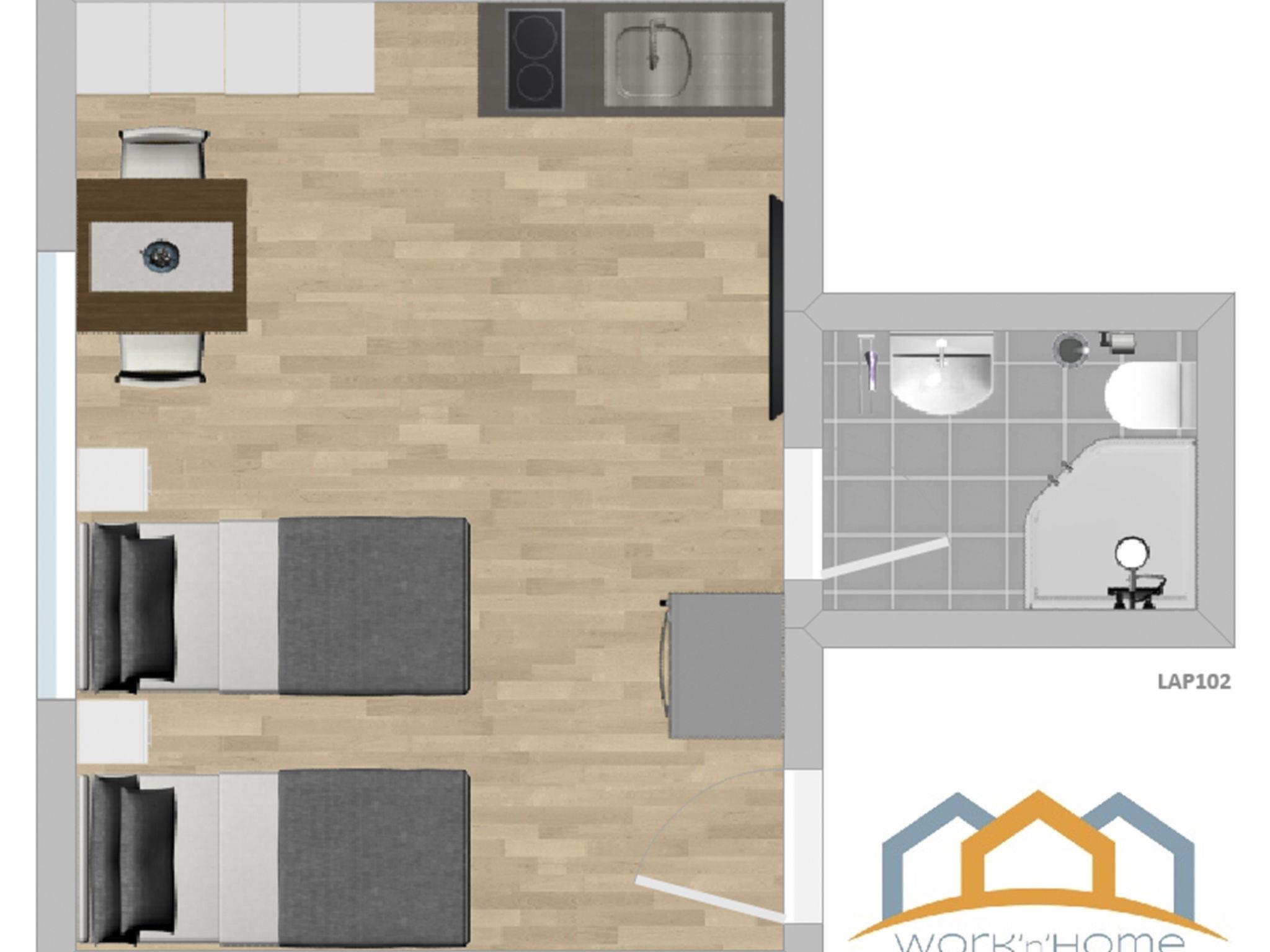 The furnished 31 m² upper floor flat near Regensburg has one bedroom with two single beds and is suitable for two people.