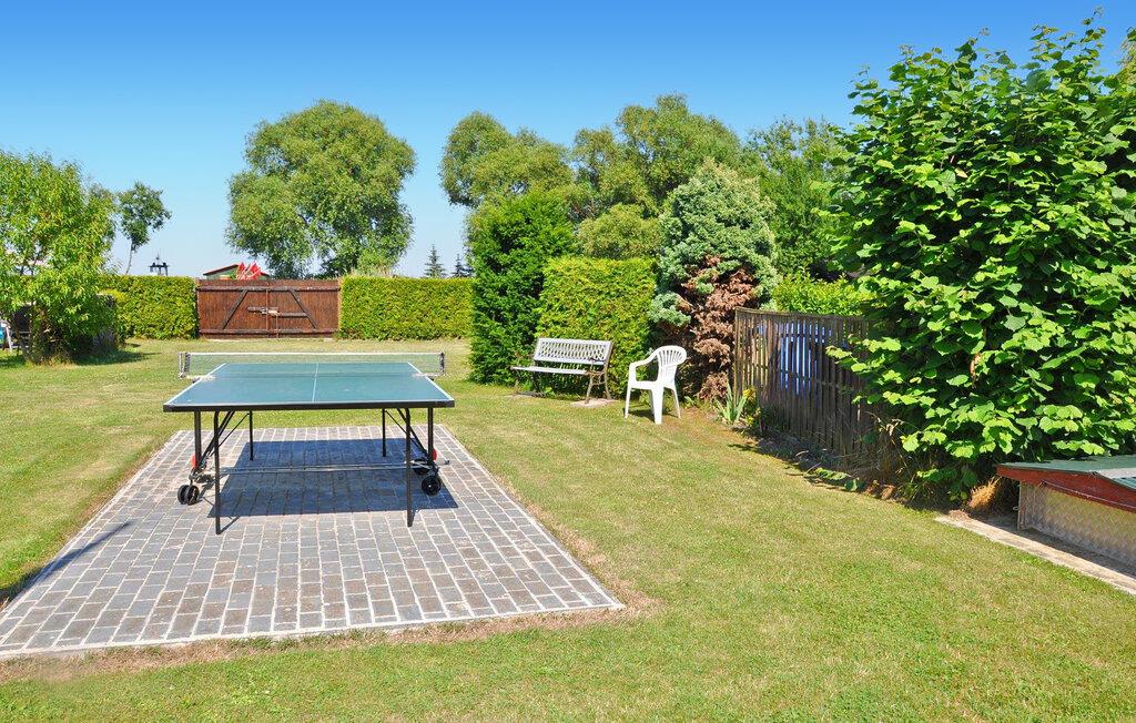 Direkte på Peenestrom ligger et af to bjælkehytte-stil feriehuse til hver 2 personer på ejerens cirka 1.300 kvadratmeter, fuldt indhegnede boligejendom. Badepladsen og en restaurant ligger kun 300 og 400 m væk, bymidten med indkøbsmuligheder er 500 m væk. Det cirka 30 kvadratmeter store ikke-ryger hus har en stue (polstrede møbler, fladskærms-tv, radio, dvd-afspiller), et lille åbent køkken (elektrisk kogeplade køleskab, diverse små køkkenmaskiner, et soveværelse (dobbeltseng) og en badeværelse (bruser, toilet) En stejl, pladsbesparende trappe fører fra stuen til en hems med 2 ekstra sovepladser (IKKE egnet til BØRN under 3 ÅR!) Sommerhuset er udstyret med insektbeskyttelse pr. vinduerne og justerbar el-varme Alle gæster har også en møbleret terrasse foran huset, en græsplæne med liggestole på ejendommen, grill, parkeringspladser, cykelrum, et bordtennisbord og en overjordisk pool (til en gebyr). Turistfisketegn og fisketegn kan også købes gennem ejeren. Slutrengøring og sengetøj er inkluderet i den samlede pris, håndklæder og vandforbrug inkluderet. Betales på stedet: energiomkostninger efter forbrug, pool brug (hvis ønsket). Kæledyr er ikke tilladt i denne ejendom. Den lille by Lassan er en tidligere fisker- og landbrugsby på det vestpommerske fastland direkte ved Peenestrom. Øen Usedom ligger på den modsatte bred af Visasvis. Det kan nemt nås på den ene side via to broer (ca. 10 km nord og syd) og på den anden side med passagerbåde.Der er en havn, et badeområde ved Peenestrom, restauranter, butikker og udlejningsstationer for cykler i byen. Forskellige vandsportsaktiviteter såsom sejlads, stand-up padling osv. tilbydes også på en campingplads. Særlige attraktioner er det kommunale museum, kirken St. Johannes og urtehaven i nabolandet Papendorf. I juli fejres traditionen tro en havnefestival på campingpladsen.