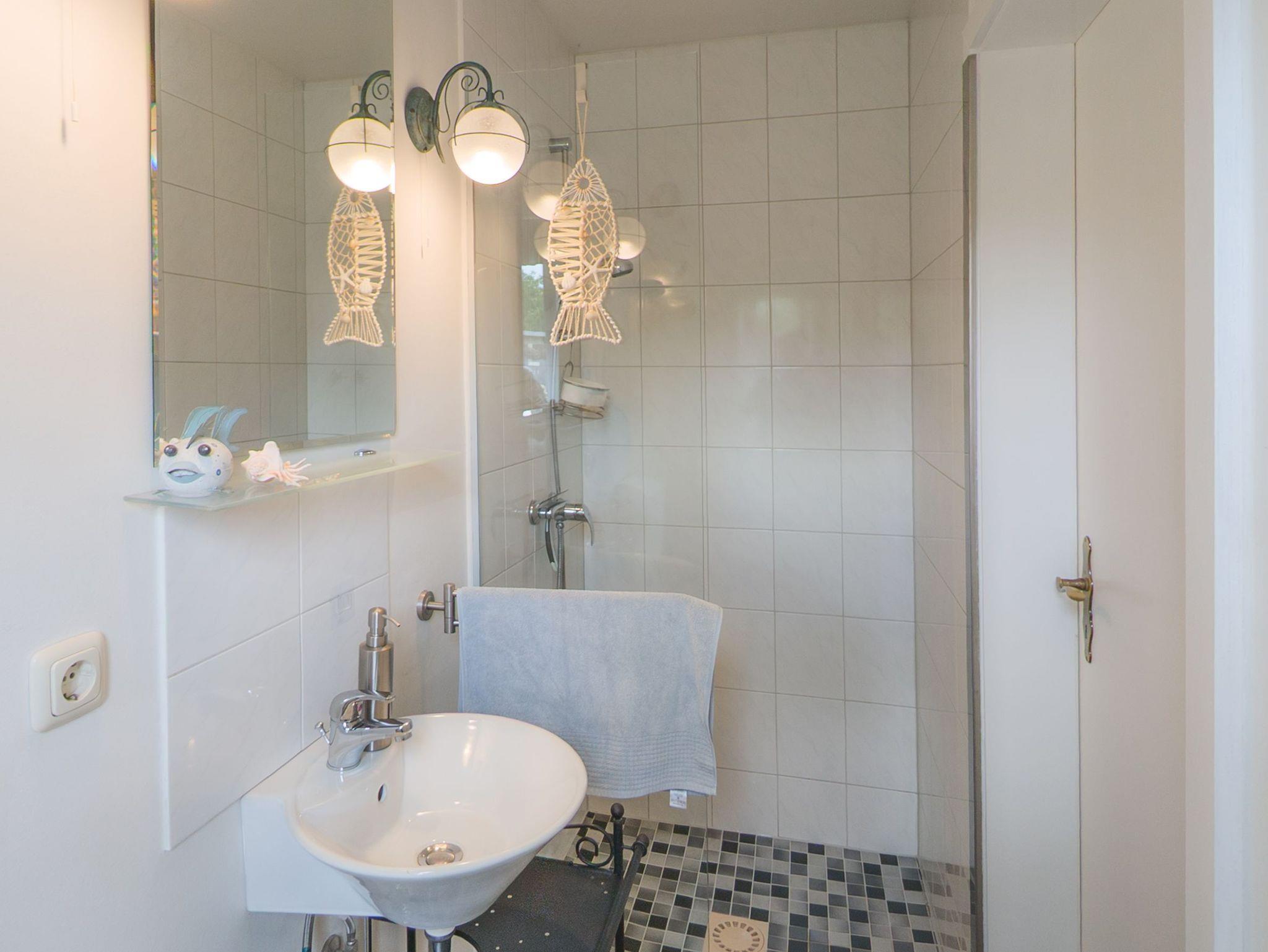 Das separate Badezimmer ist eine wahre Oase ? mit einer modernen, ebenerdigen Dusche, einem WC und einem Waschbecken, das für Ihre Bedürfnisse bestens ausgestattet ist.