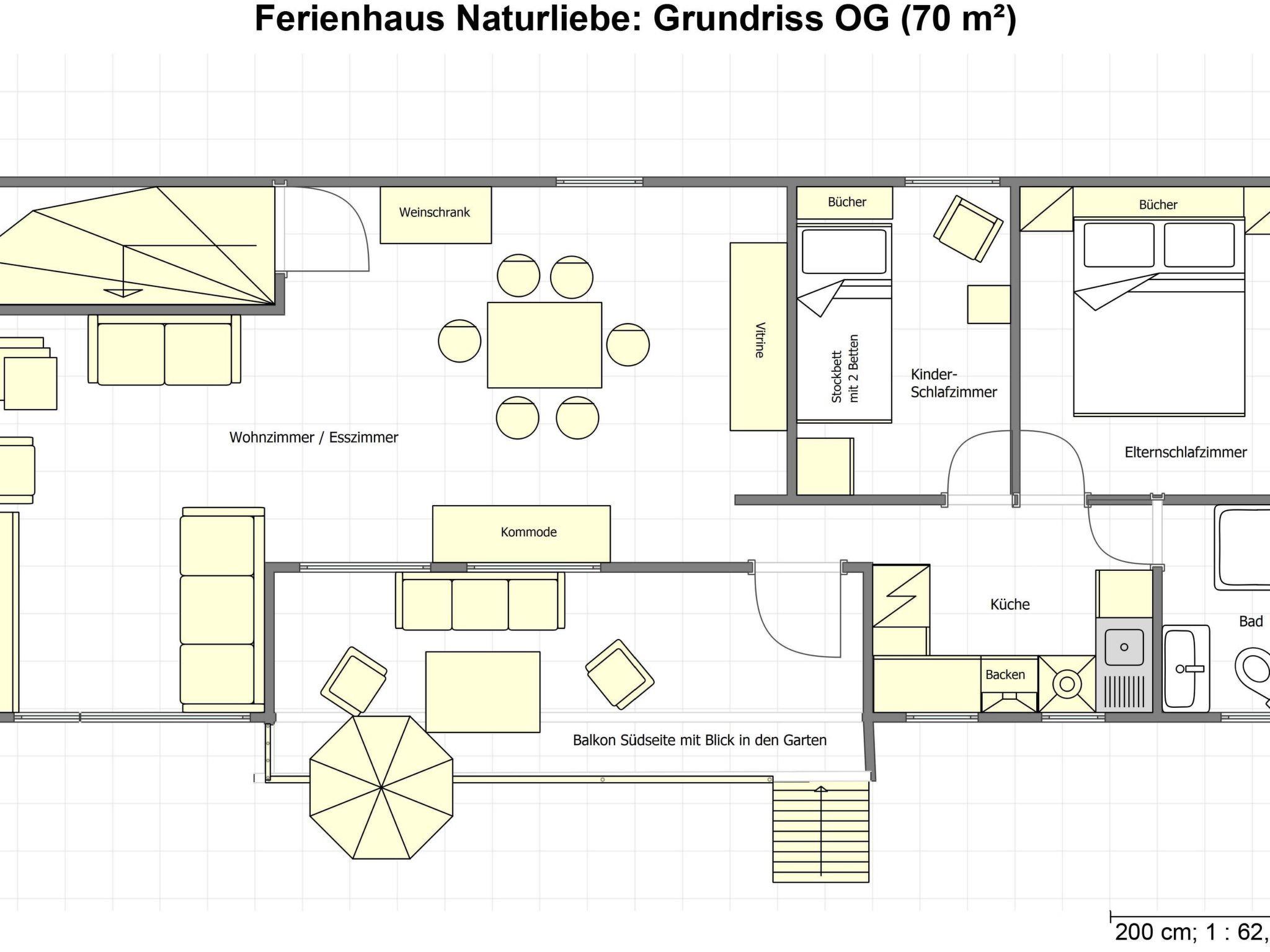 On the covered terrace with outdoor fireplace, you can spend cosy evenings barbecuing while listening to the rippling of the water cascades. For romantic evenings, there is a campfire site with benches and an adjacent dining area.