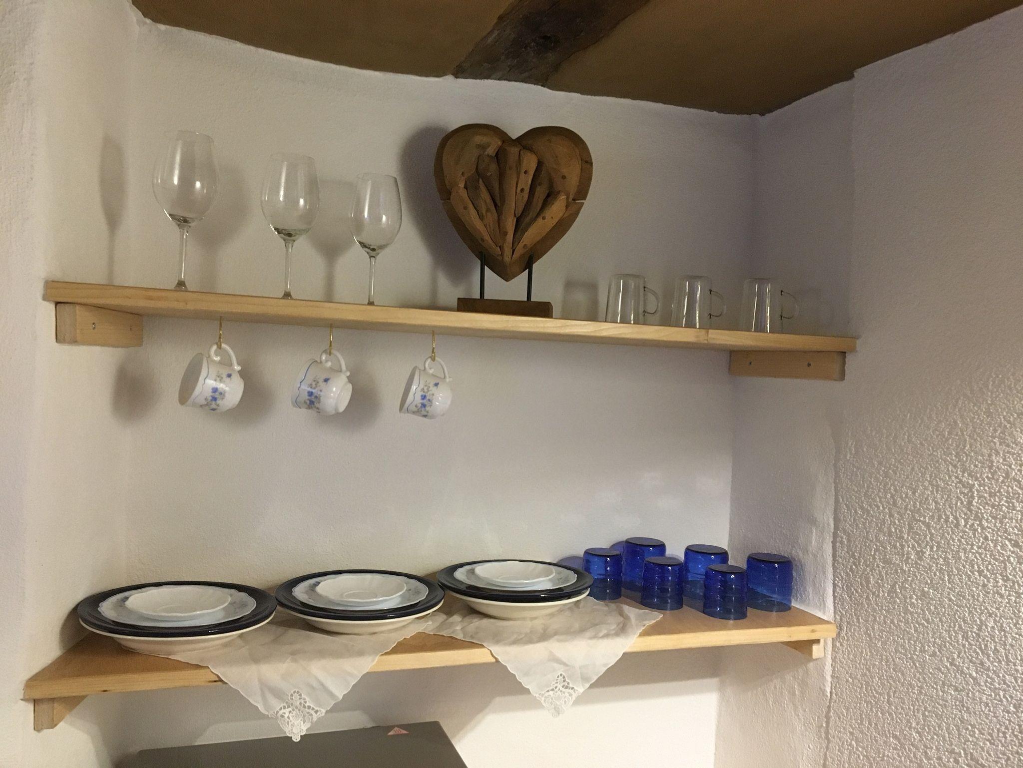Die Küche ist ausgestattet mit Spüle, zwei Platten Cerankochfeld und einem Kühlschrank mit Gefrierfach. Ebenso ist eine Mikrowelle, Wasserkocher, Toaster und eine Pad Kaffeemaschine vorhanden.