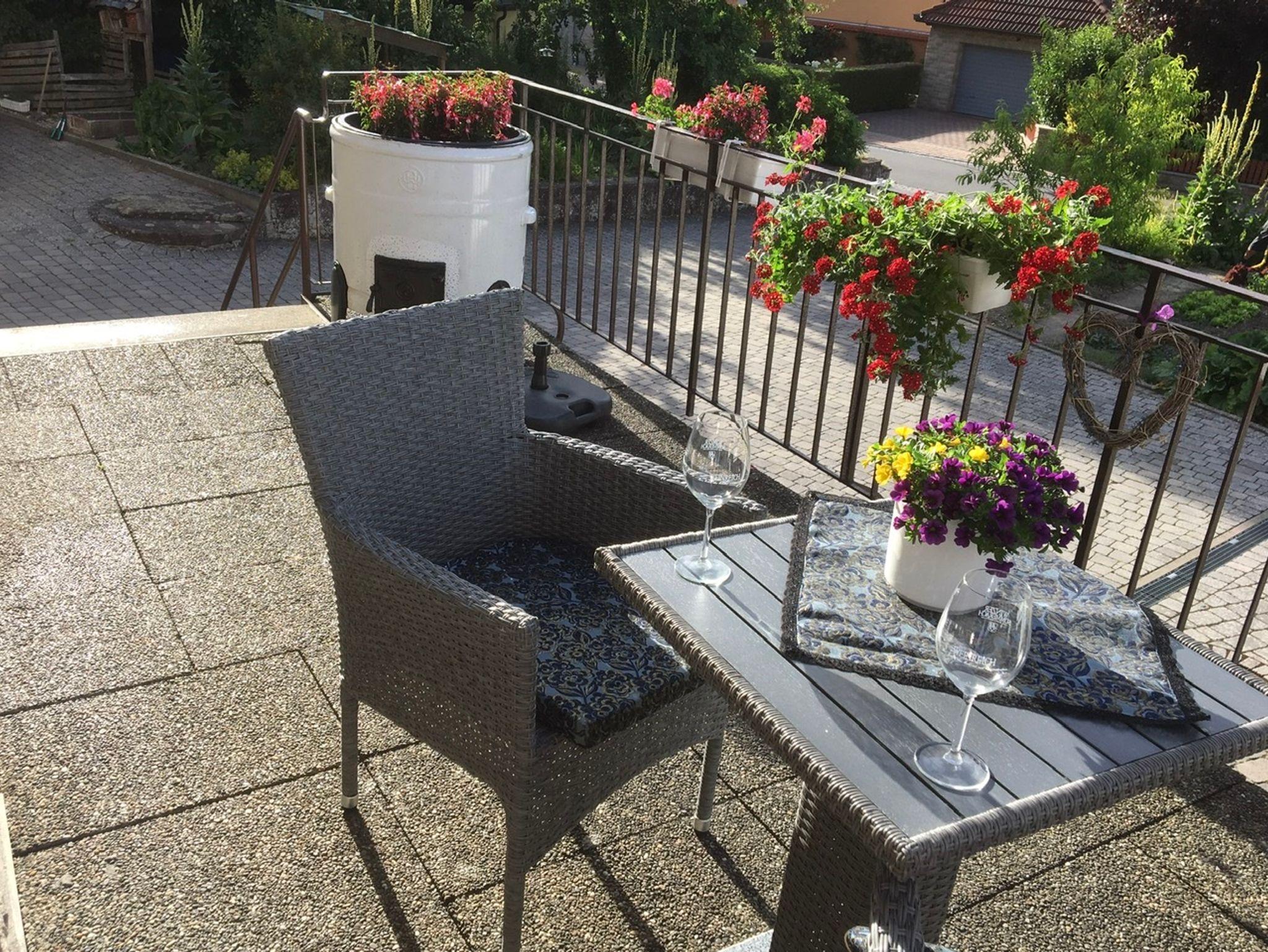 Der Essbereich, Handtücher, Bettwäsche, Flachbild-TV, WLAN und die Terrasse im Eingangsbereich machen das Apartment komplett.