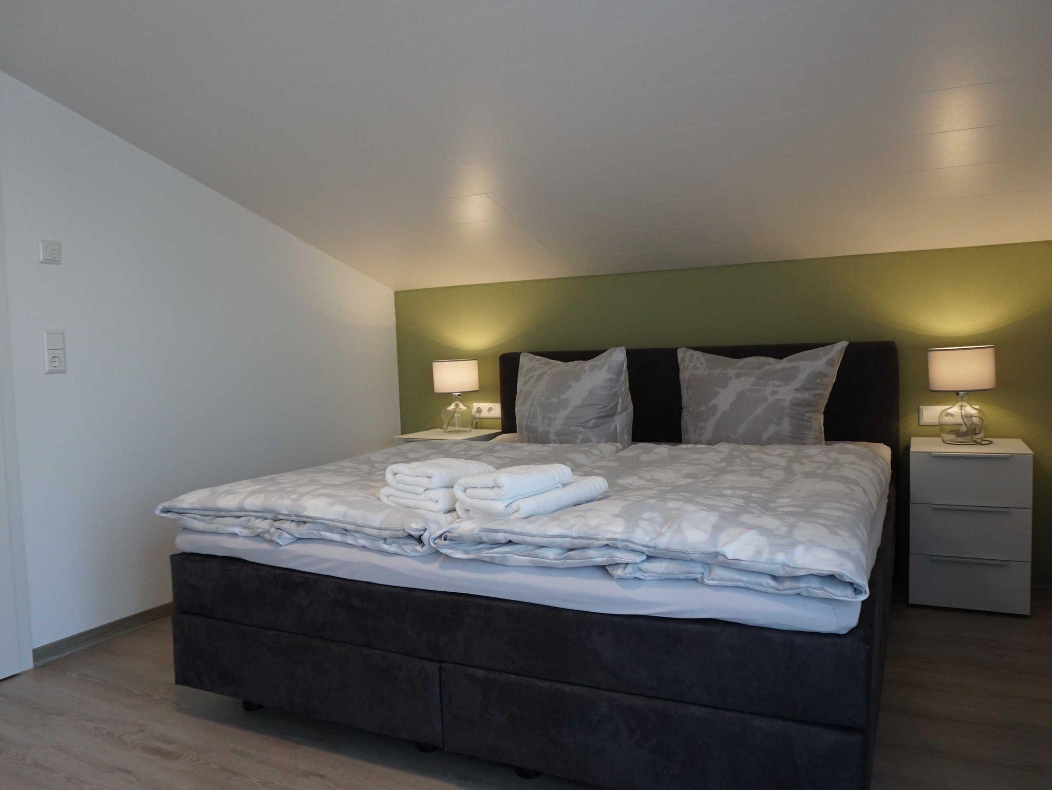 Die Ferienwohnung verfügt über vier Schlafplätze sowie eine zusätzliche Schlafcouch. Auf 60m² finden Sie zwei Doppelzimmer, eine voll ausgestattete Küche sowie ein Wohn- und Esszimmer.