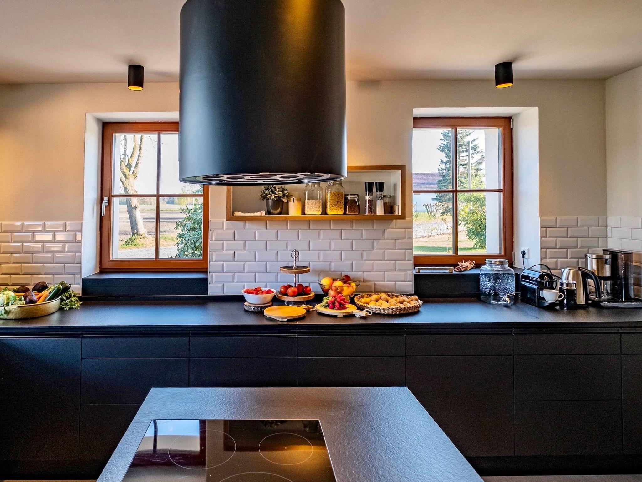 Der Gebäudeflügel Refugium bietet einen großen Raum (60 m² Grundfläche) mit offenen Dachstuhl+ Galerie, eine große voll ausgestattete Küche mit Panoramafenster, Kochinsel und Speisekammer sowie einen lichtdurchfluteten Wintergarten (25 m² Grundfläche).