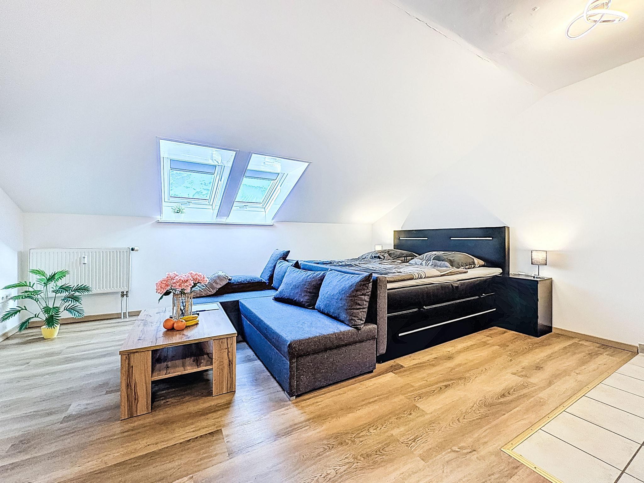 "Alpenlodge-Höfats", 1-room apartment 30 m2, on the top floor. With sloping ceilings, modern and cosy furnishings: living/sleeping room with rooflight with 1 sofabed and 1 double bed (180 cm, length 200 cm), dining table and cable TV (flat screen). Kitchenette (oven, dishwasher, 4 ceramic glass hob hotplates, toaster, electric coffee machine). Shower/WC. Heating. Facilities: hair dryer. Internet (WiFi, free). Parking (1 car), garage (extra) at the house. Please note: not suitable for small children not suitable for children under 6 years. Non-smokers only. Maximum 2 pets/ dogs allowed. Smoke alarm.