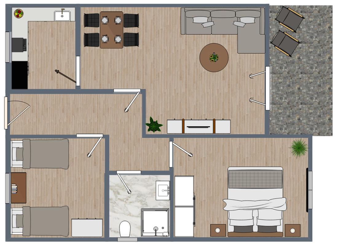 Die Wohn- und Schlafräume sind mit Teppichboden ausgestattet.
