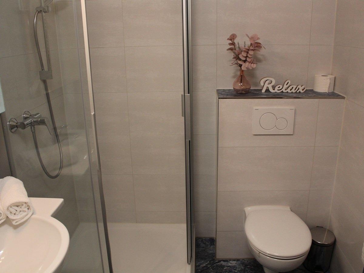 mit Dusche, Badmöbel und WC