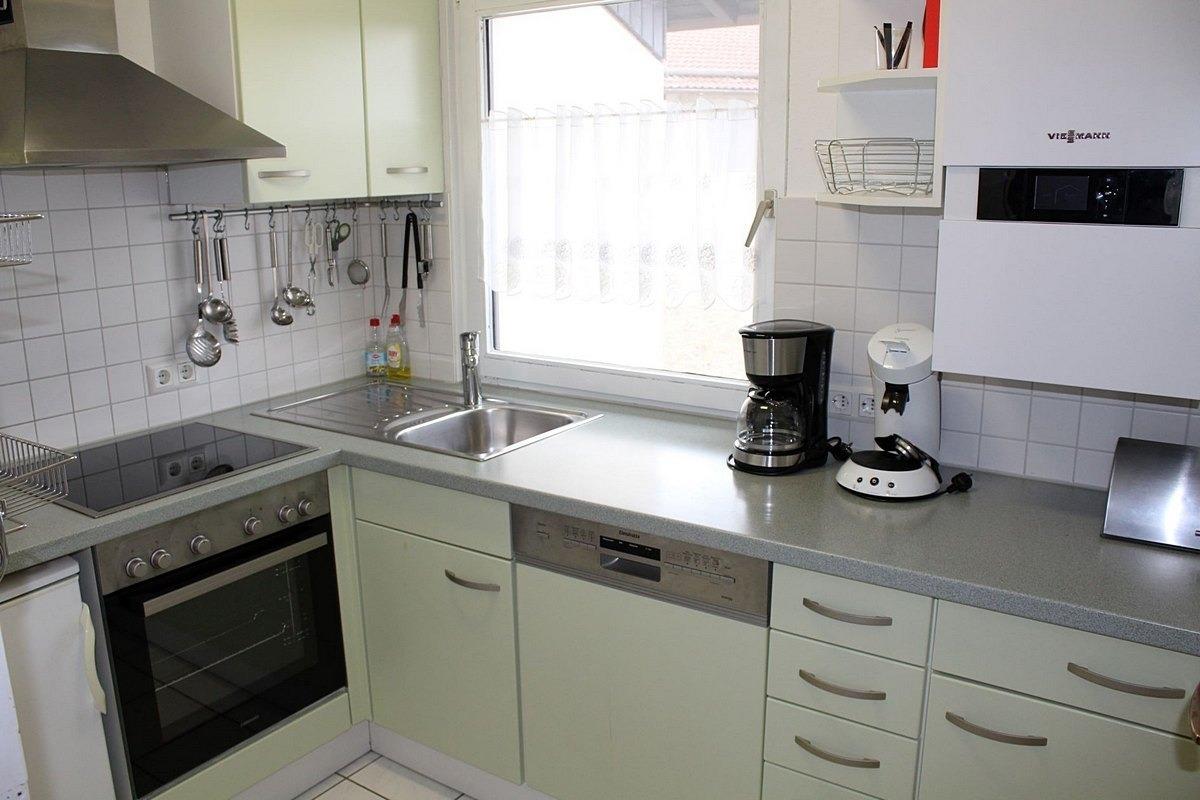 Unsere Küche ist komfortabel ausgestattet mit z. B. großer Spülmaschine, Mikrowelle, Wasserkocher, Kaffeemaschine, Toaster u. v. m.