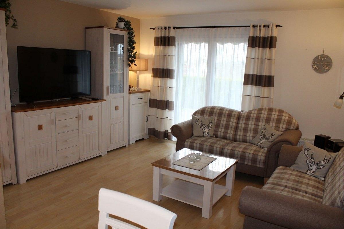 Wohn-/Esszimmer mit Flachbild-TV, Stereoanlage, Spiele für die ganze Familie und eine Reihe Bücher für gemütliche Stunden haben wir für Sie bereitgestellt.