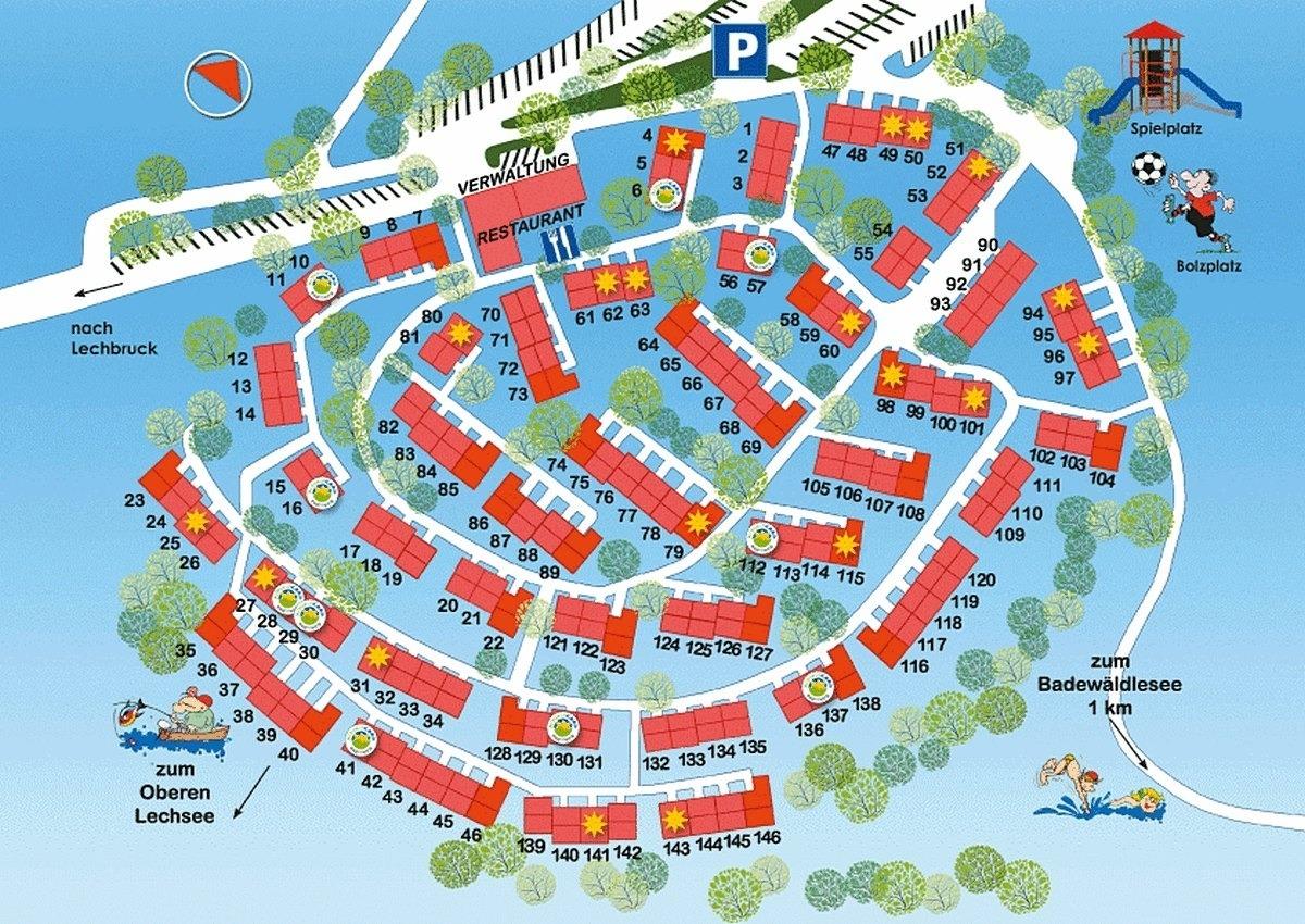Anlage: Die autofreie Ferienanlage Hochbergle, darf zum Wohl aller Gäste nur am An- und Abreisetag befahren werden. Kinder können sich somit frei bewegen und Erwachsene genießen die Ruhe. Für die Kleinen Urlauber steht außerdem Tischtennis, Bolzplatz, ein großer Spielplatz, der nur wenige Minuten entfernte Badesee und ein Rodelhang zum Austoben zur Verfügung. Das Restaurant "Hochberglestuben", sorgt mit preiswerten Gerichten und typisch bayerischer und Allgäuer Küche für das Wohl der Gäste (gegen Gebühr). Der attraktive Ferienort Lechbruck am See bietet Einkaufsmöglichkeiten, Restaurants und eine Menge Aktivitäten.