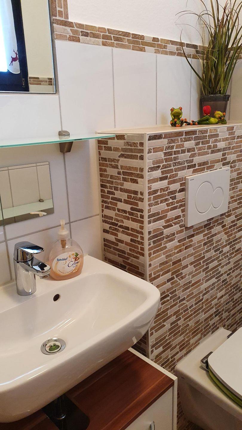 Bei schlechtem Wetter können Sie sich im geräumigen Badezimmer mit bodengleicher Dusche erfrischen oder sich an den Flammen des Kaminofens wärmen. Sie finden außerdem ein separates Gäste-WC für zusätzlichen Komfort. Die Ferienwohnung ist allergikergeeignet und zeichnet sich durch Nichtraucherfreundlichkeit aus – hier können Sie unbesorgt durchatmen und sich wohlfühlen.