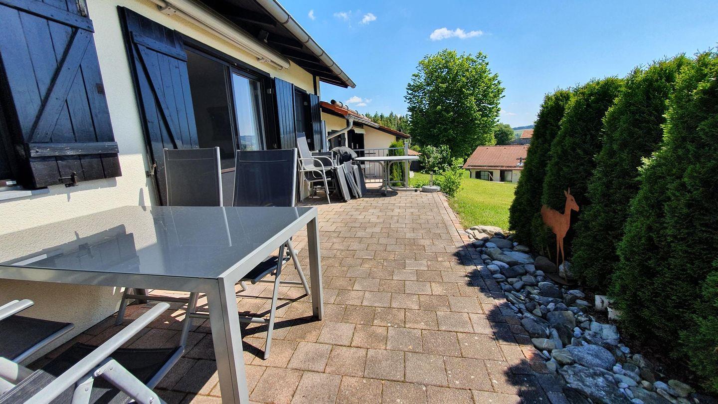 Ein besonderes Highlight der Unterkunft ist die große Terrasse, auf der Sie an warmen Tagen die atemberaubende Aussicht auf die umliegende Natur genießen können. Egal, ob Sie beim Grillen oder bei einem Glas Wein entspannen möchten, diese Außenfläche lädt zum Verweilen ein. Für die kleinen Gäste gibt es einen Spielplatz direkt in der Nähe, damit auch die Kinder ihren Spaß haben können.