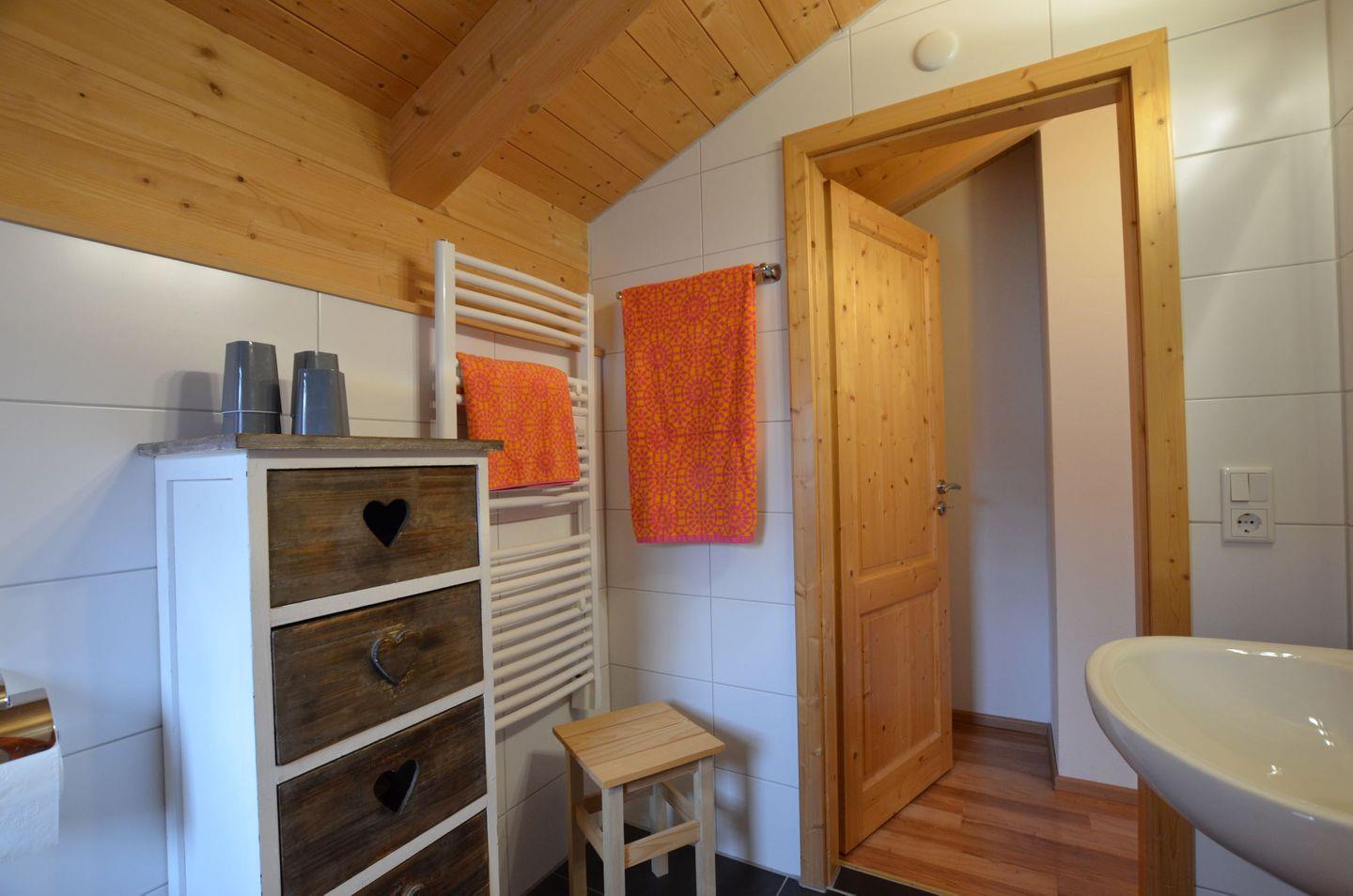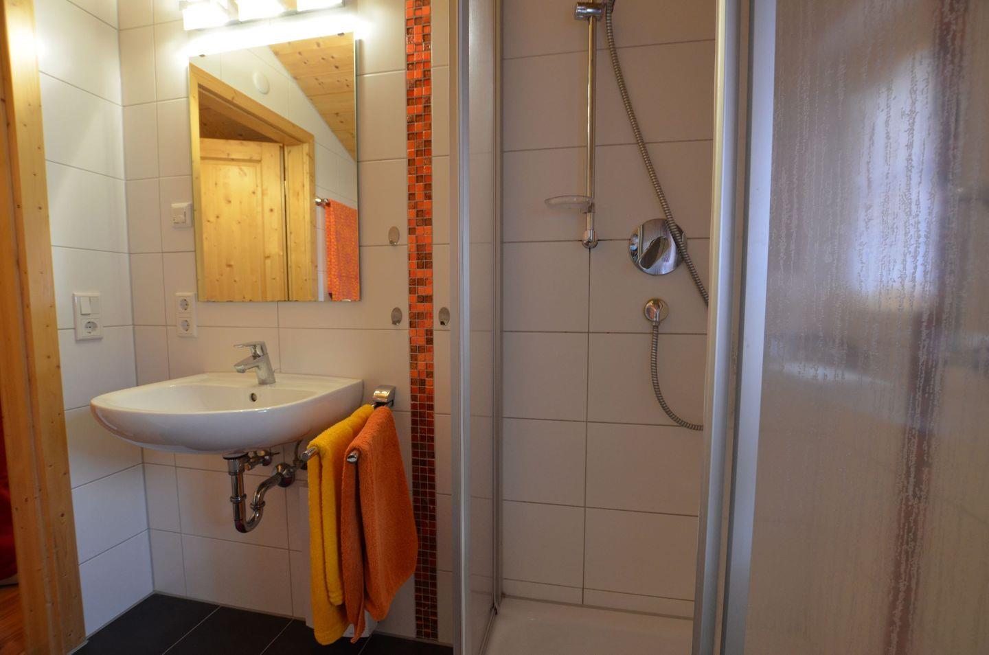 Das Badezimmer verfügt über eine Dusche, ein WC und zusätzlich eine Fußbodenheizung.