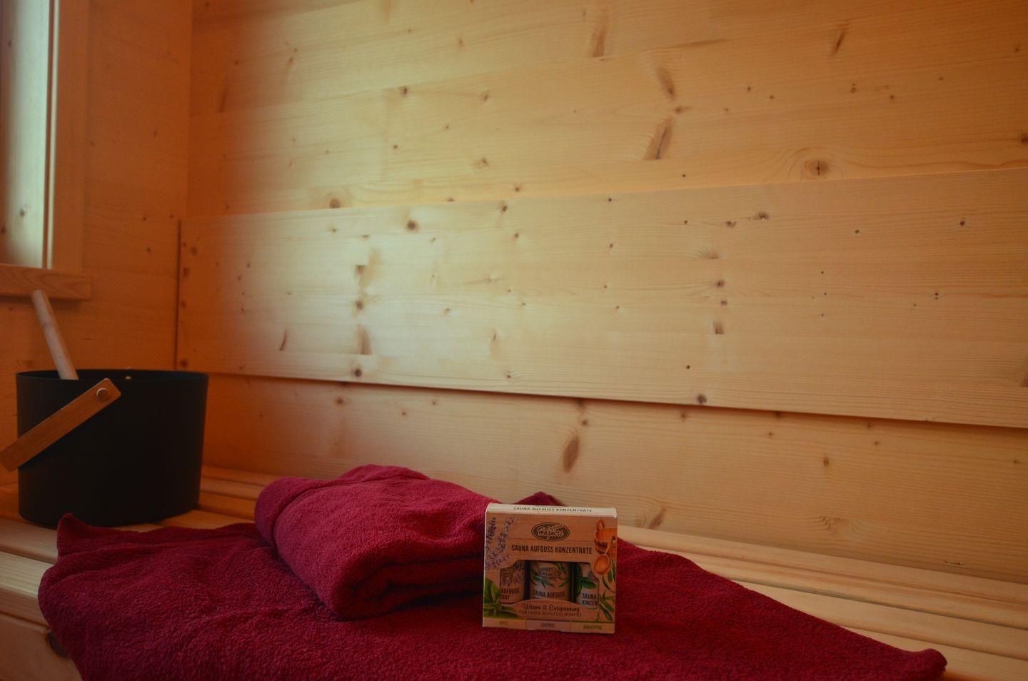 Nach einem Tag voller Abenteuer in der Natur können Sie sich in der hauseigenen Sauna mit Waldblick entspannen. Genießen Sie die wohltuende Wärme und lassen Sie die Hektik des Alltags hinter sich. Hier finden Sie Zeit für sich selbst und Ihre Liebsten.