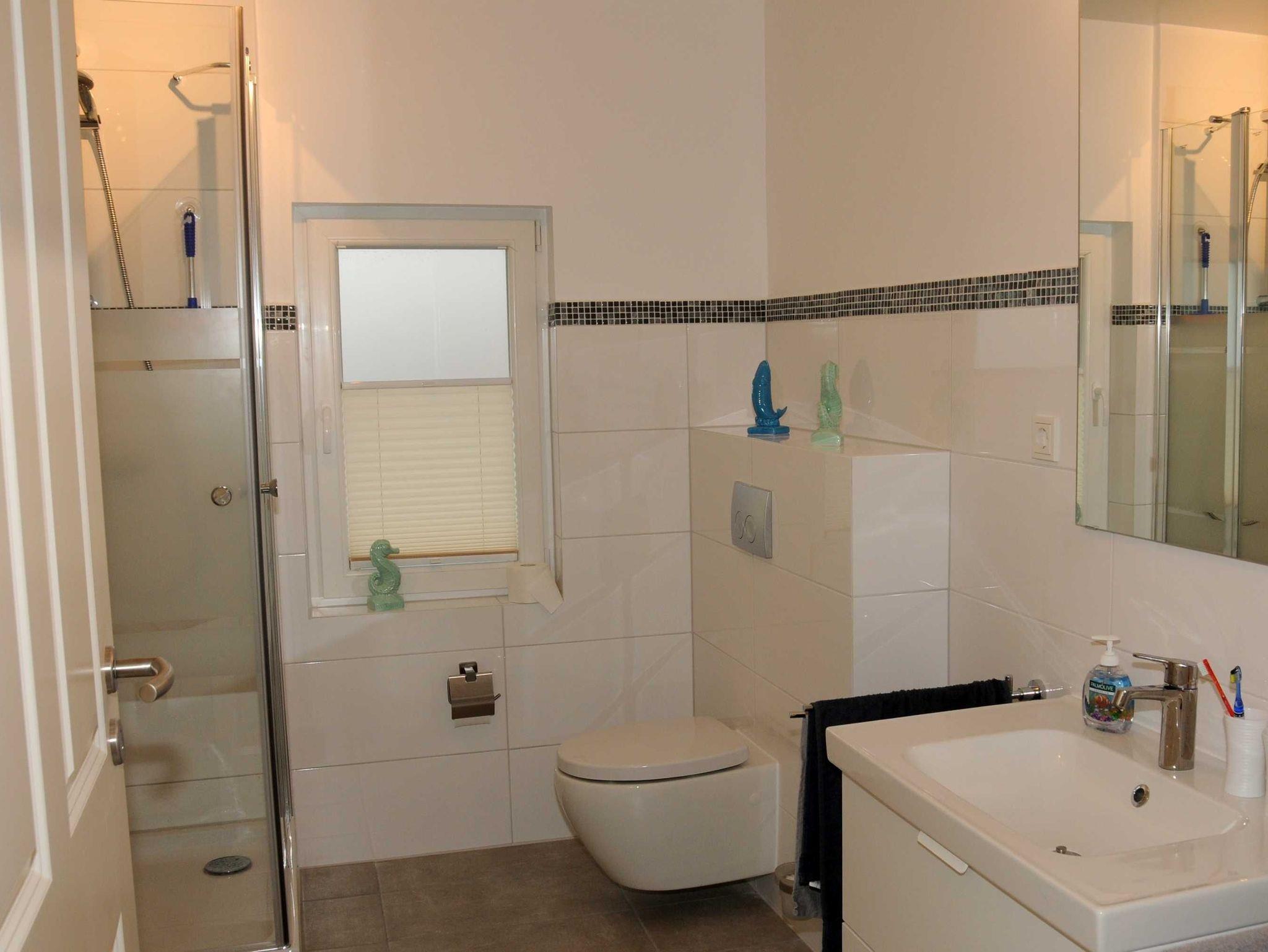 Das Bad ist mit Dusche und WC ausgestattet, ebenso finden Sie einen Föhn und eine Waschmaschine vor.