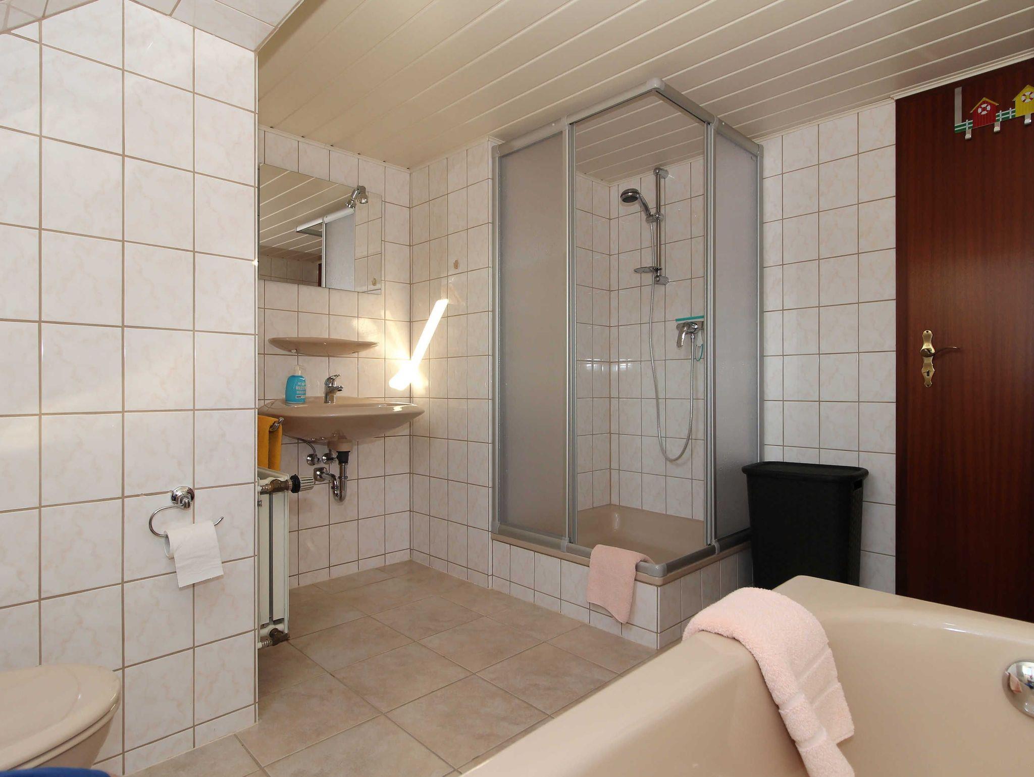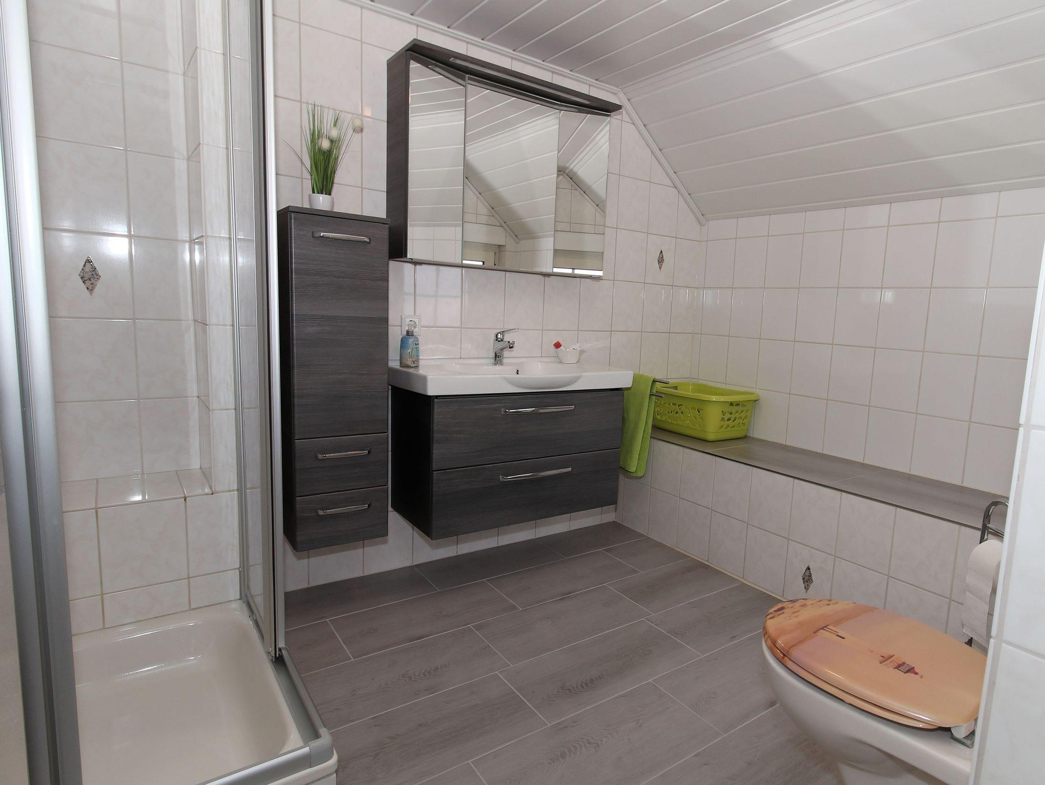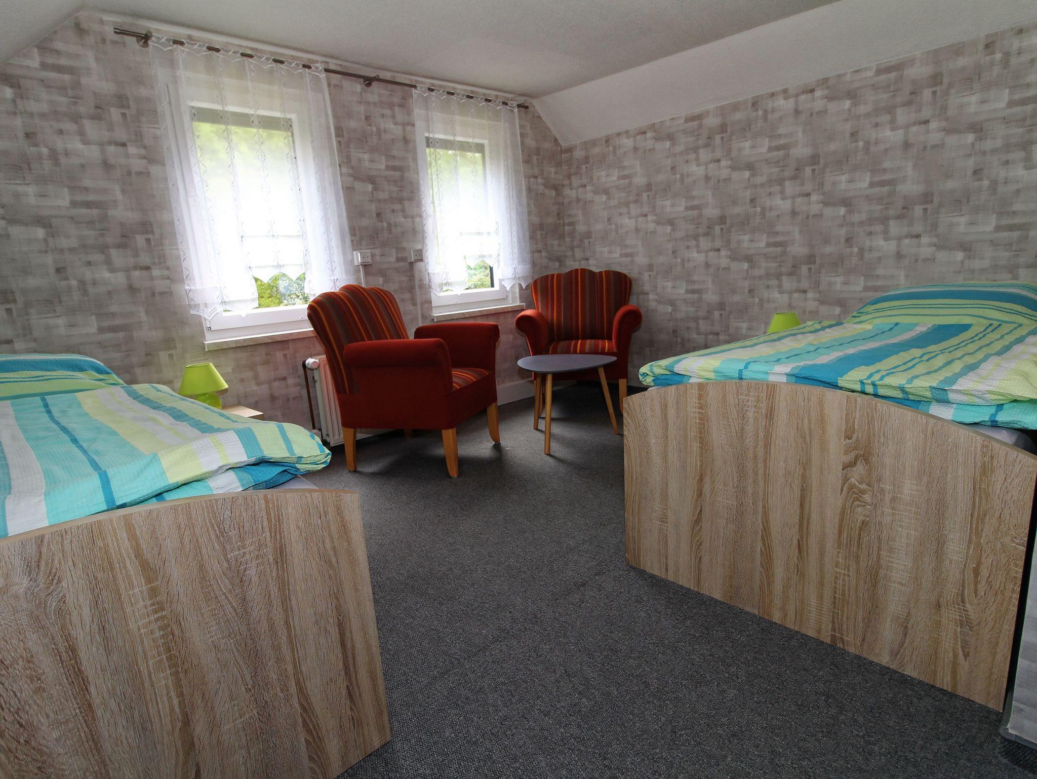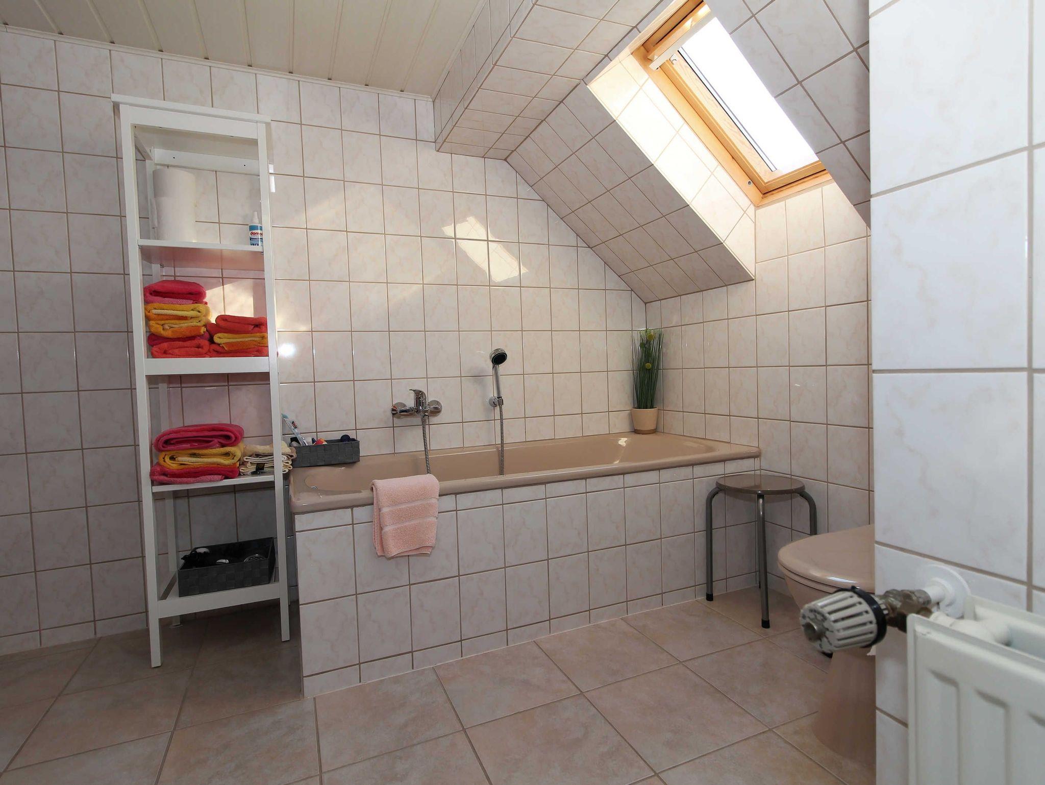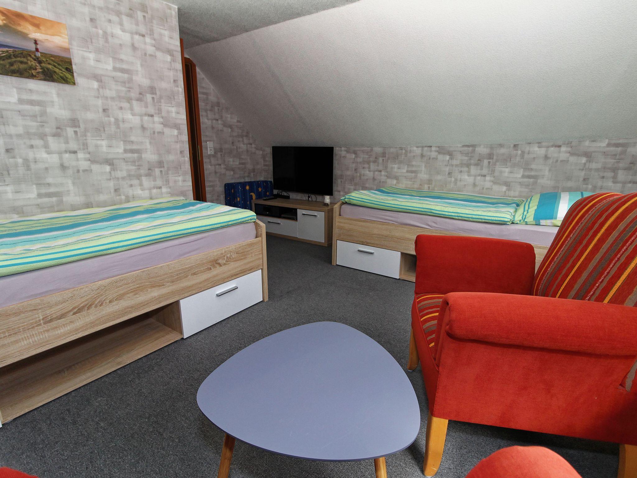 Im Nichtraucherhaus gibt es im Obergeschoss ein Schlafzimmer mit zwei Einzelbetten sowie ein Bad.