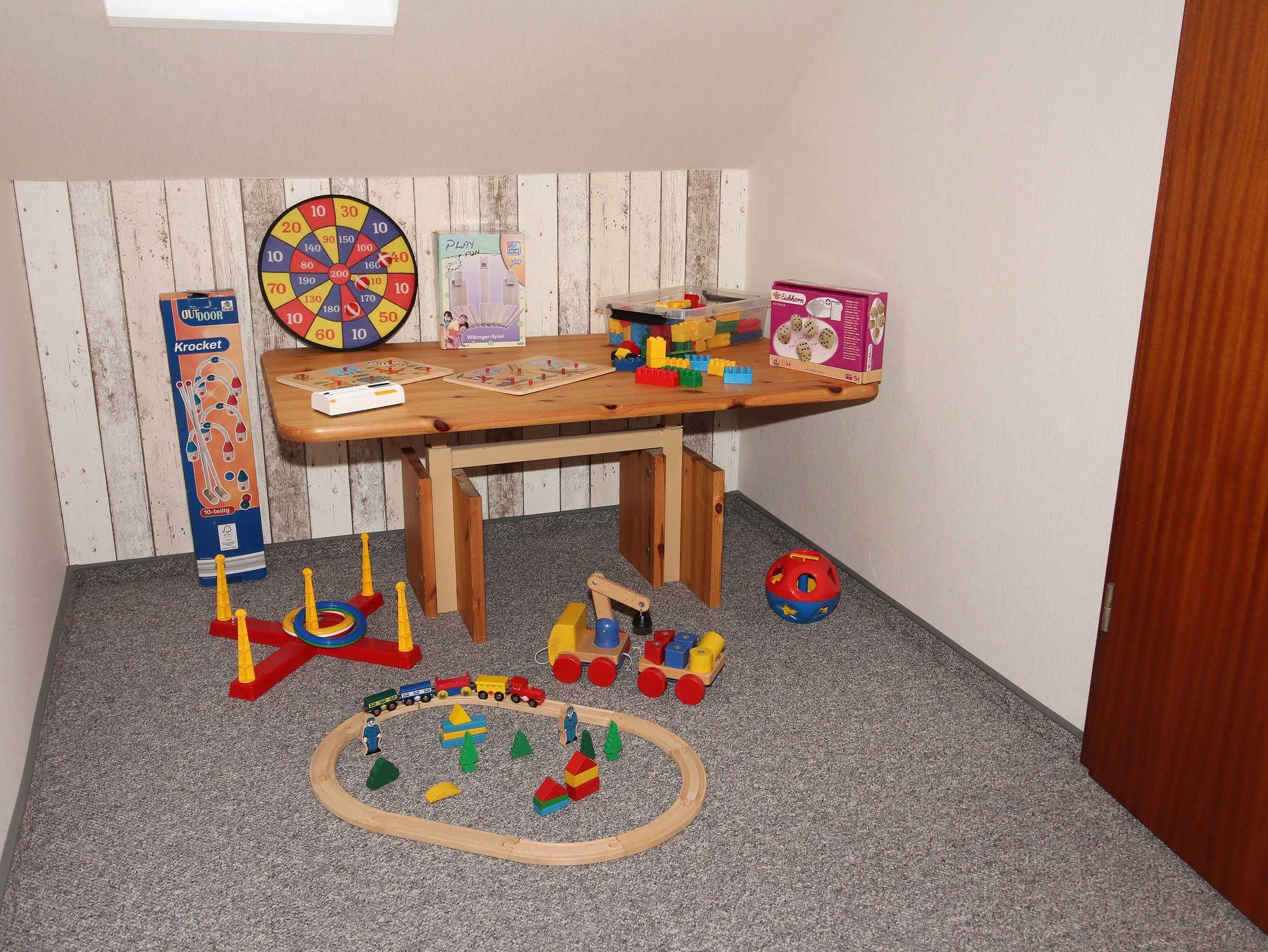 Im Erdgeschoss ist eine voll eingerichtete Küche, ein Esszimmer mit Sat TV, ein Wohnzimmer mit SAT TV, ein Schlafzimmer mit Doppelbett und ein Einzelbettzimmer. Im EG ist ein zweites Bad, ein Gäste WC sowie ein Raum mit Waschmaschine, Trockner und Tiefkühlschrank. Handtücher und Bettwäsche sind inklusive.