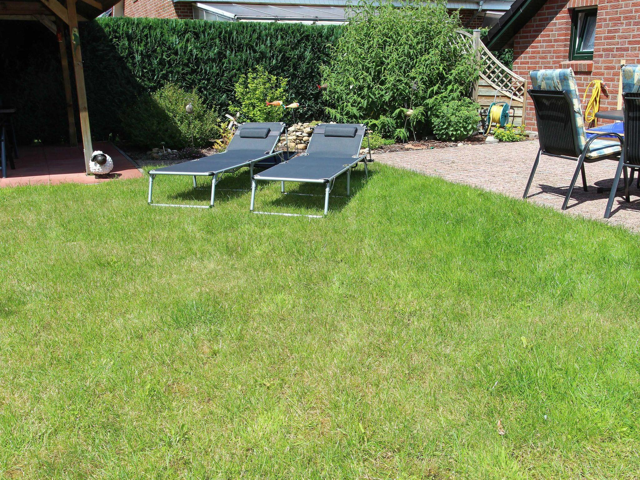 Es verfügt über eine Liegewiese mit Liegen, sowie eine überdachte Terrasse mit Gartenmöbeln und Grill. Von hier aus können Sie über den Ostfriesland-Wanderweg das schöne Ostfriesland erkunden. Parkplätze und eine abschließbare Garage, sowohl fürs Auto als auch für Fahrräder, stehen unseren Gästen zur Verfügung.
