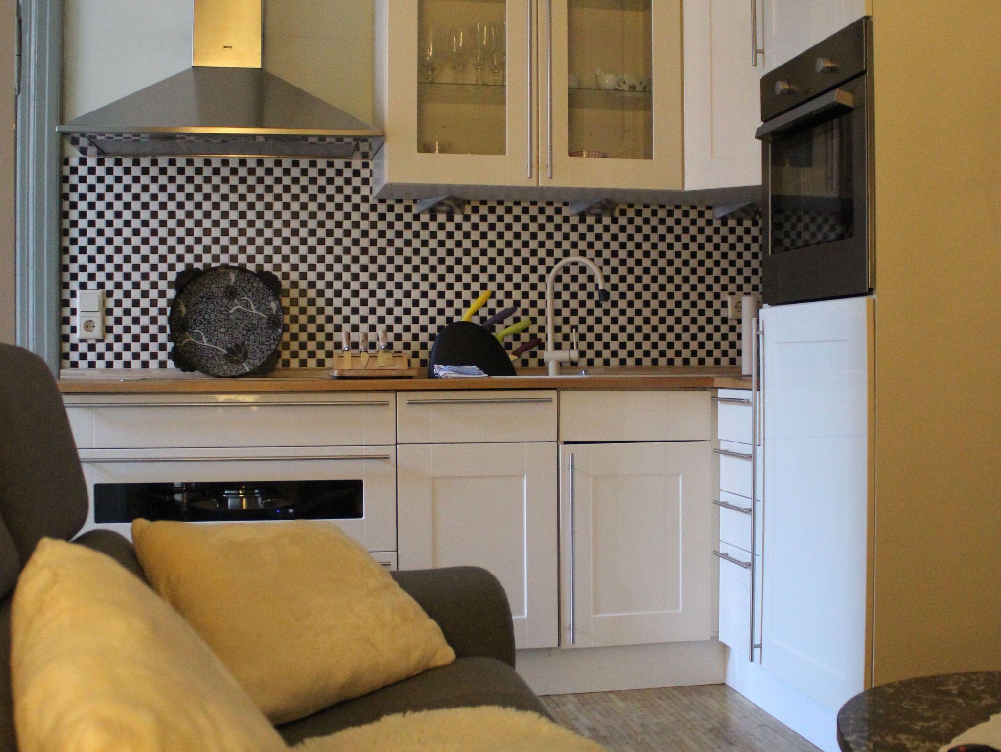 Die 45 qm große Ferienwohnung ist mit einer vollausgestatteten Küche, ein gemütliches Schlafzimmer mit französischem Doppelbett und ein komfortables Wohnzimmer mit modernen und stilvollen Antiquitäten-Möbeln ausgestattet.