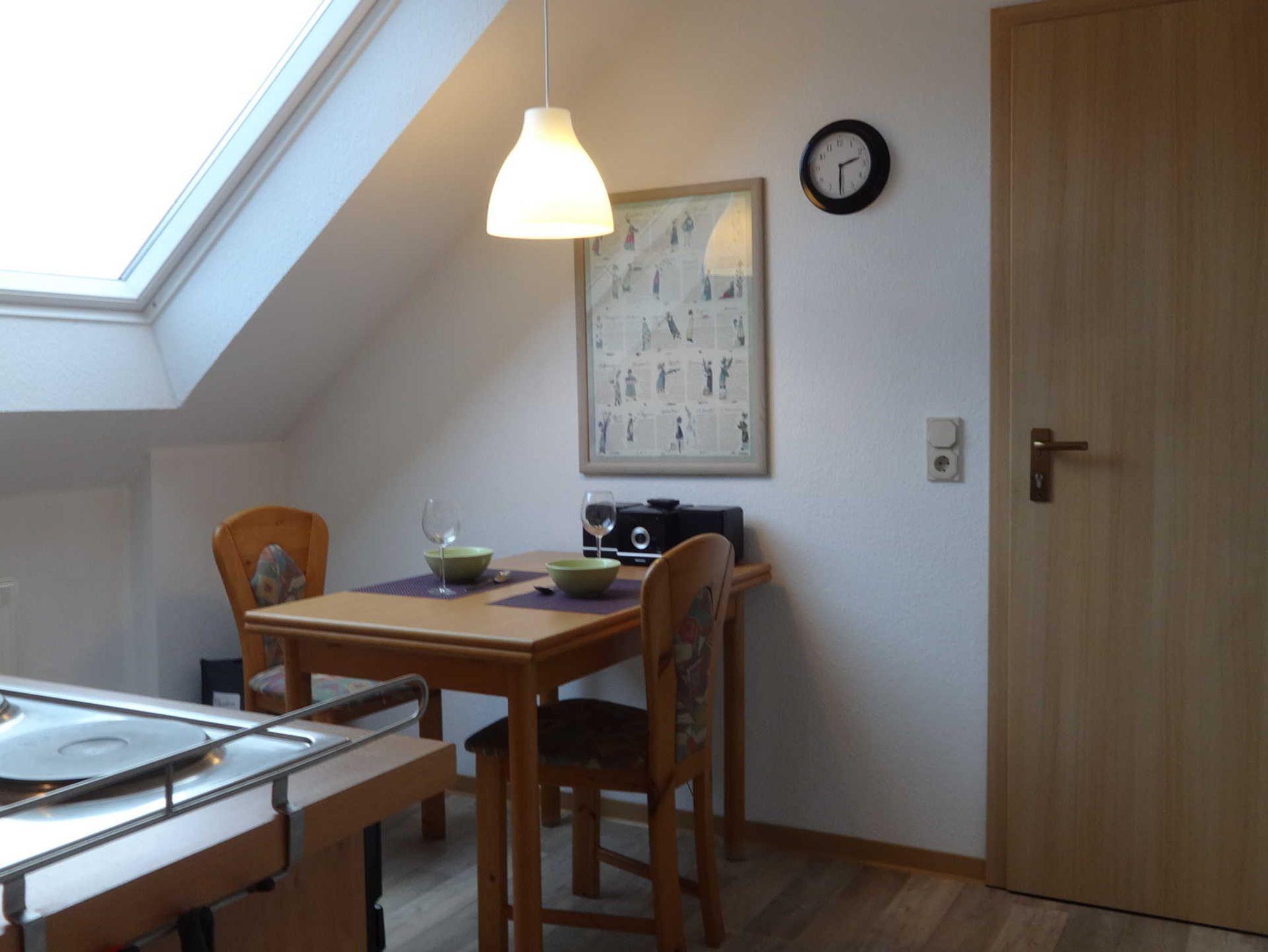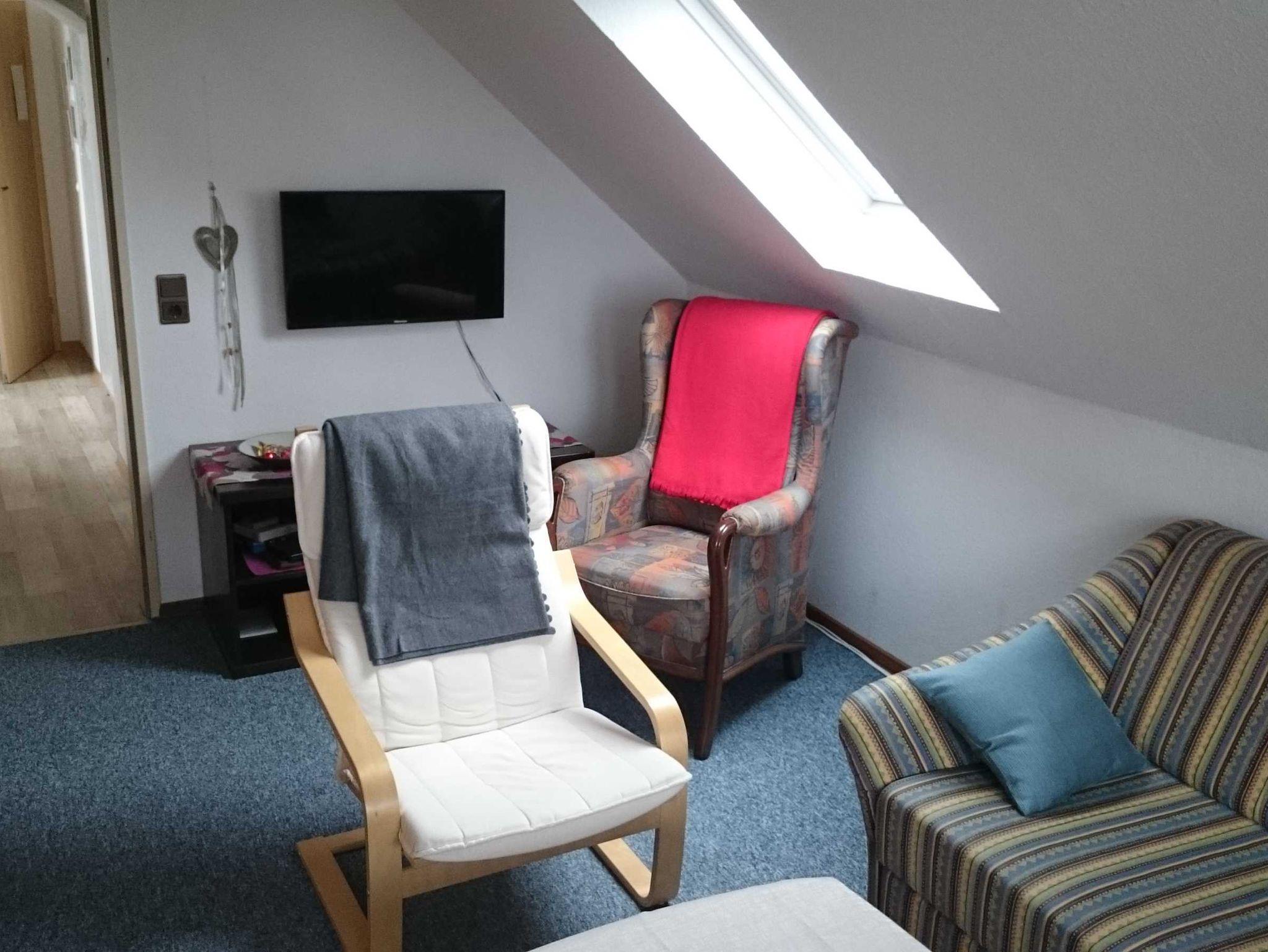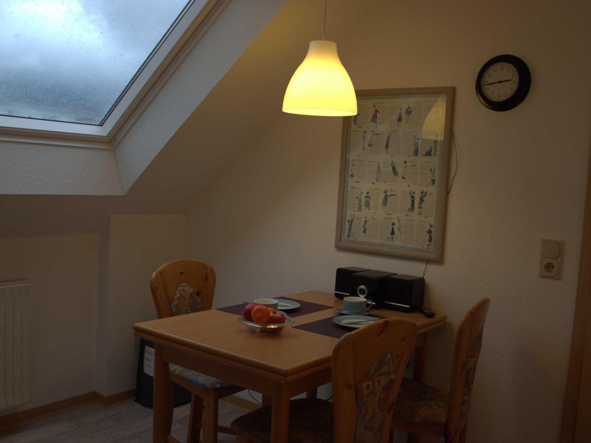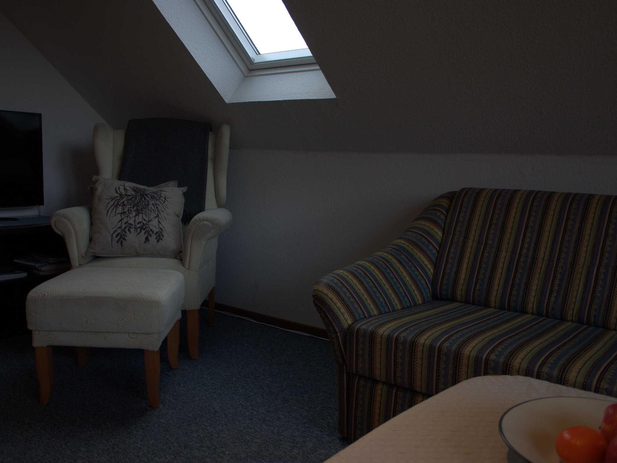 Die Ferienwohnung befindet sich im Obergeschoss. Sie ist hell und lichtdurchflutet.