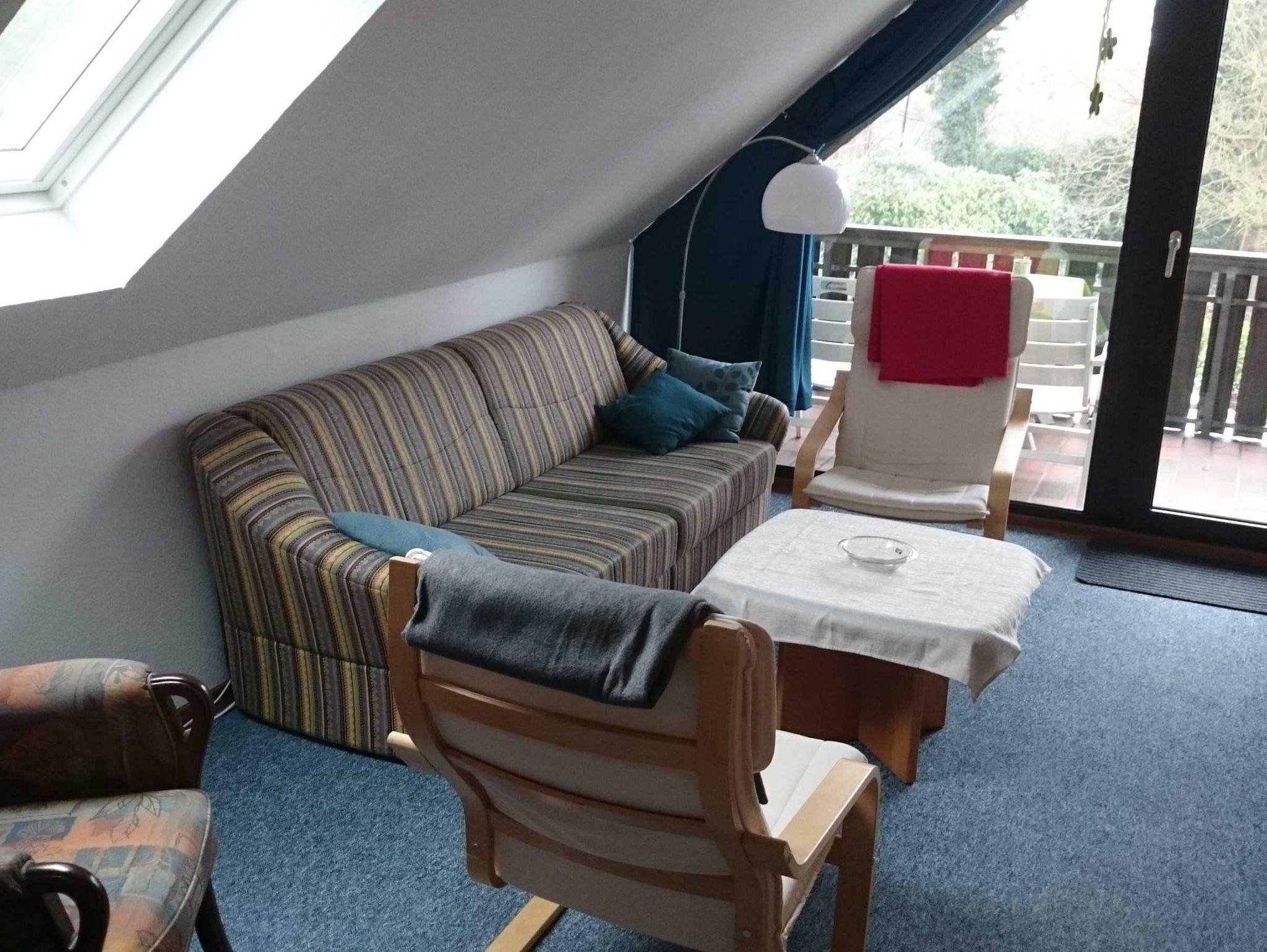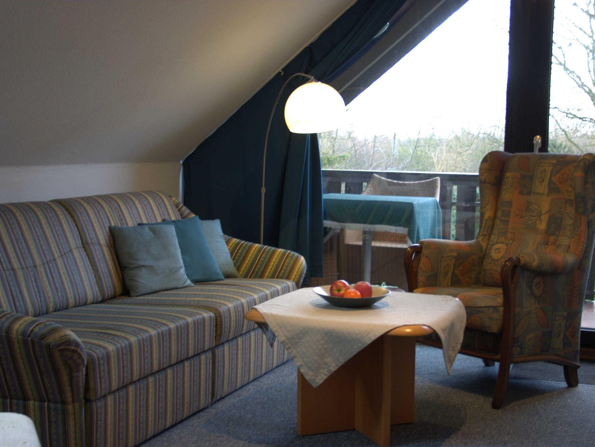 Im Wohnzimmer kann das Sofa als Schlafgelegenheit für zwei Personen genutzt werden. Kabel-TV sowie ein W-LAN Anschluss sind vorhanden. Auch von hier aus gibt es einen direkten Zugang zur Loggia mit Blick in die Natur. Hier stehen Gartenmöbel für vier Personen zur Verfügung.