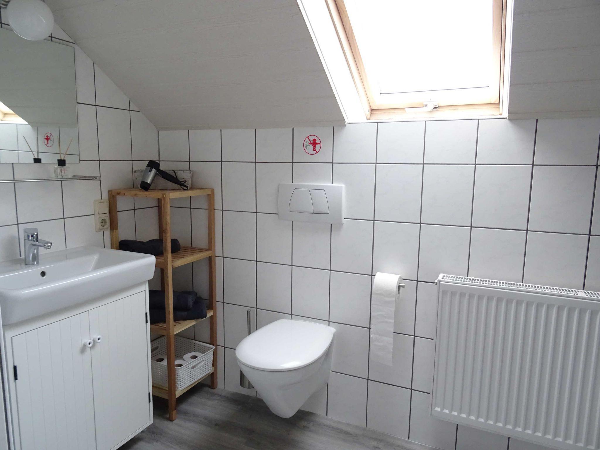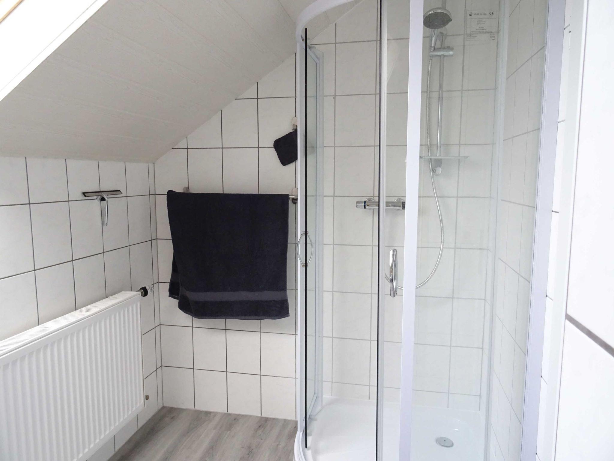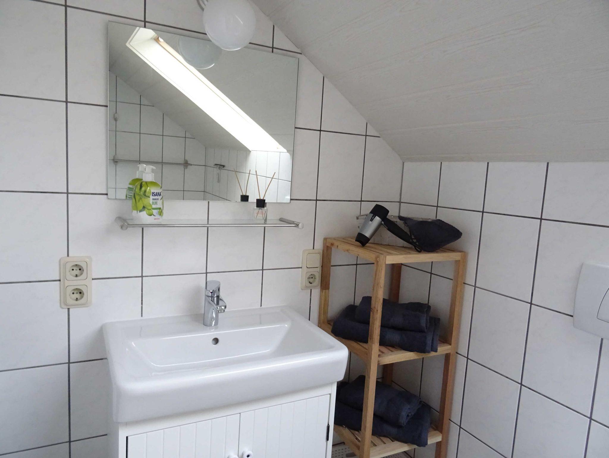 Das moderne Badezimmer ist mit einer neuen Dusche, sowie einem neuen Waschtisch, ausgestattet.