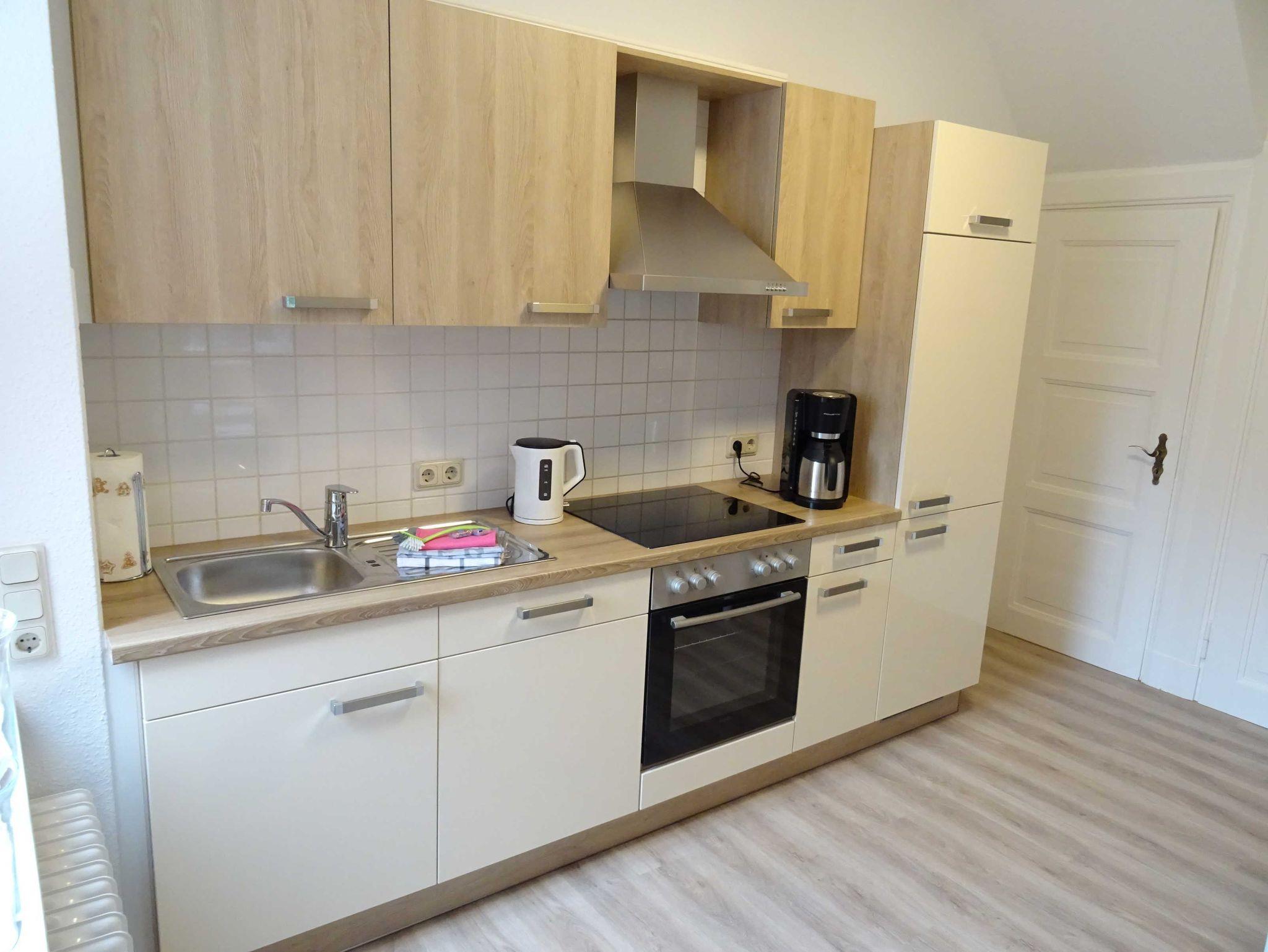 In der Küche befindet sich eine neue vollausgestattete Küchenzeile, einschließlich Backofen und Spülmaschine.