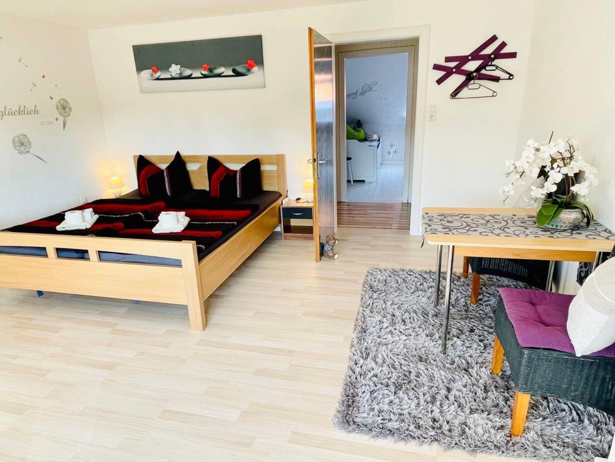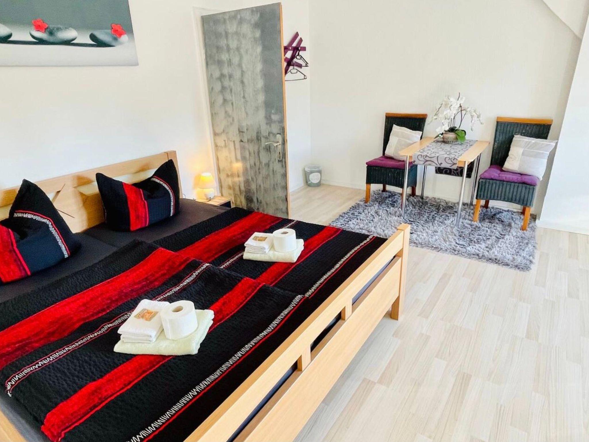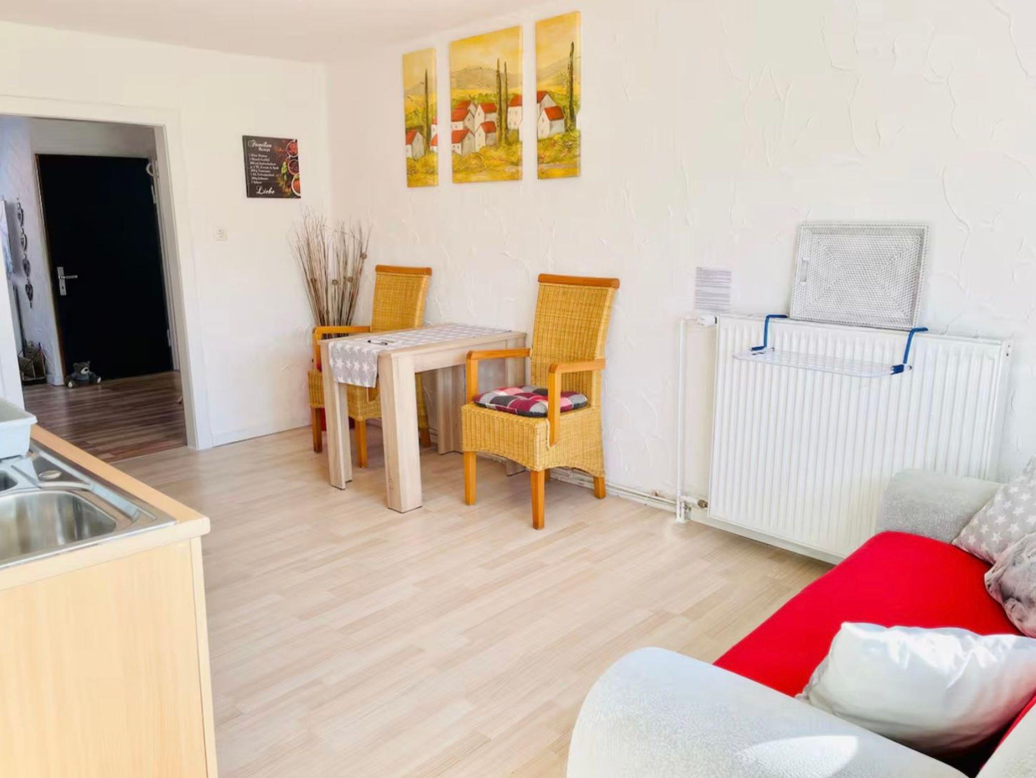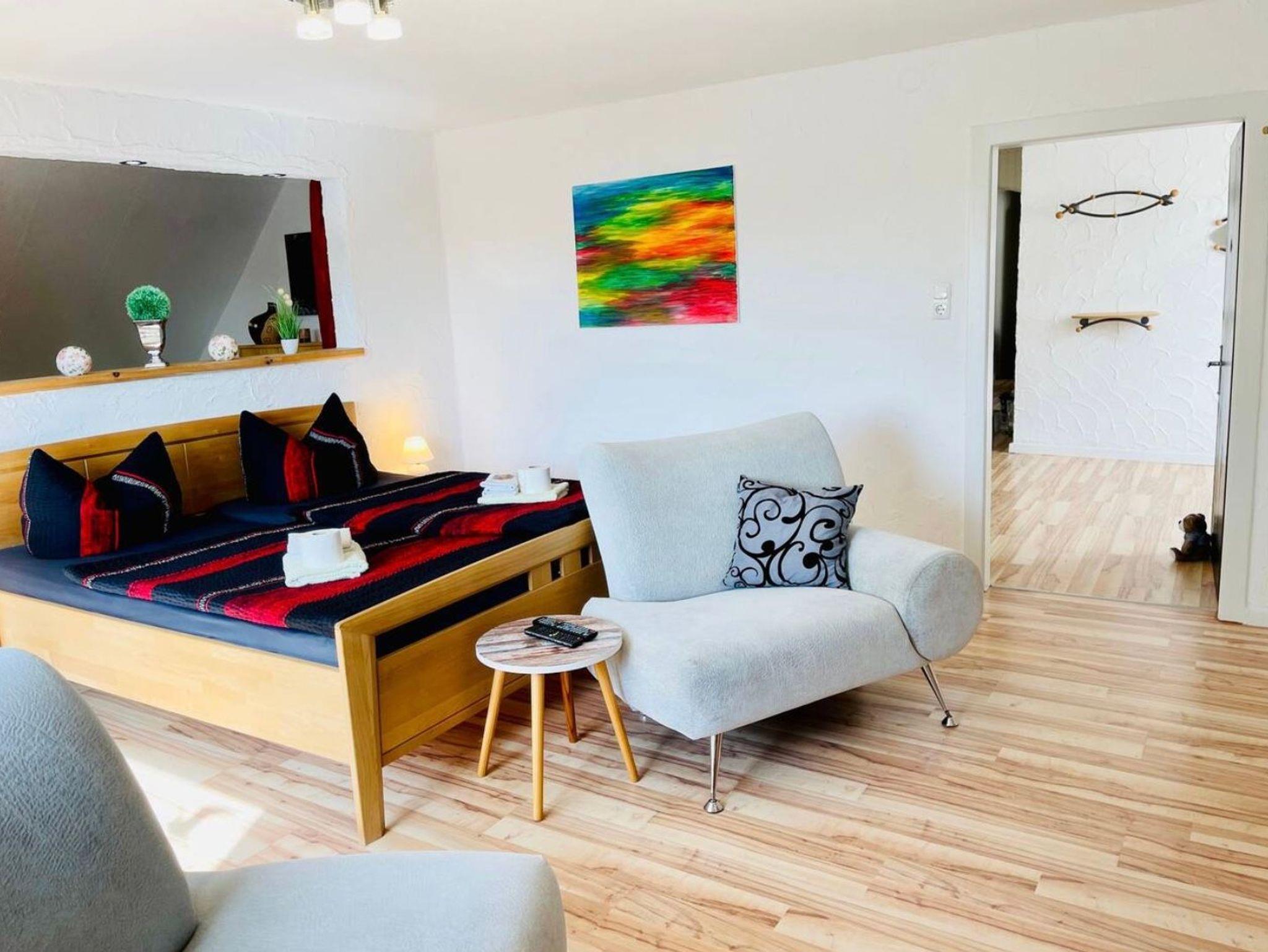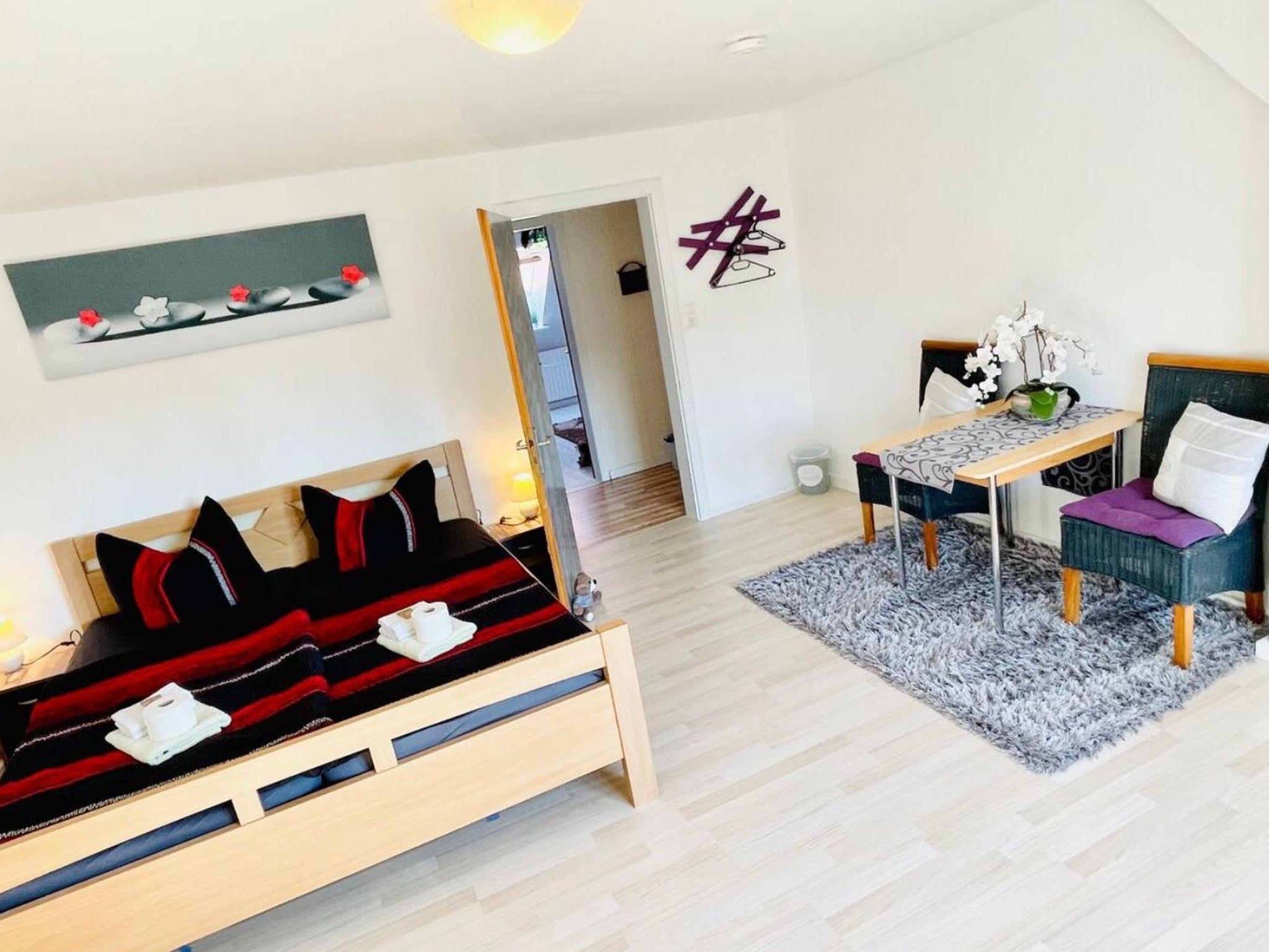 Große Ferien- bzw. Monteurswohnung (104 qm) im Dachgeschoss mit mehreren Schlafbereichen für bis zu 7 Erwachsene + 1 Kleinkind bis 4 Jahre (zusätzliches Gitterbett). Großes Bad mit Badewanne, Dusche, Waschmaschine und Trockner vorhanden. Eigene Parkplätze und eine überdachte Außenterrasse gehören auch dazu. Für mehr Informationen, auch, was die Erstausstattung betrifft, lesen Sie gerne die ausführliche Beschreibung zum Objekt. Dort finden Sie auch noch weitere Fotos.