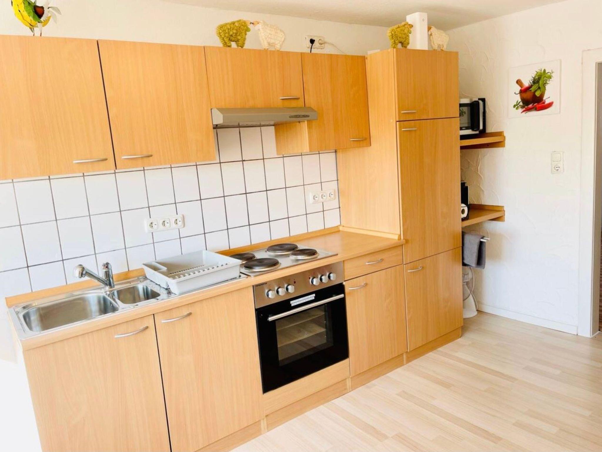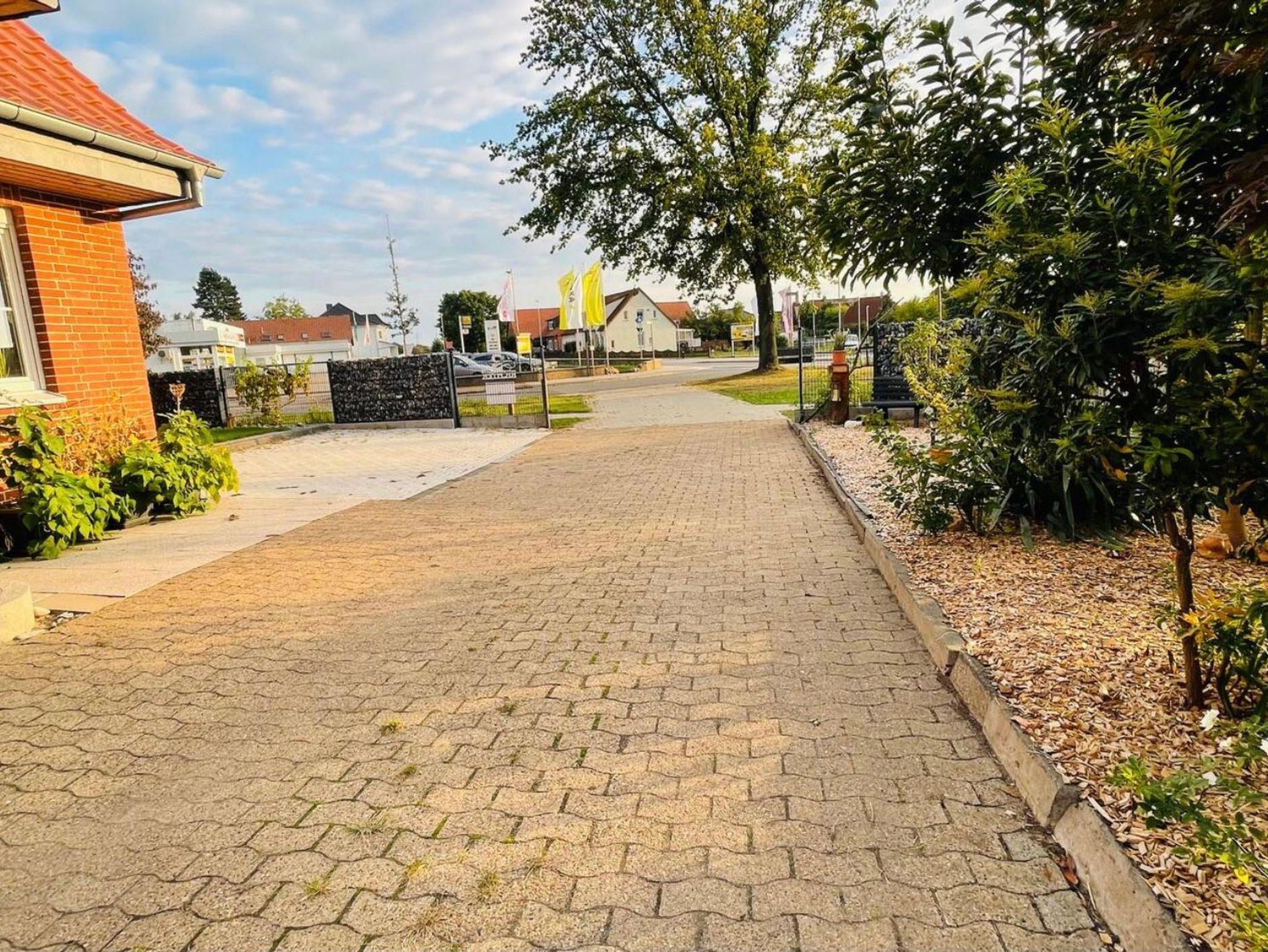 Ein Autohaus mit Werkstatt und Mietwagenverleih ist direkt nebenan, direkt dahinter ist ein Bäcker mit Café und ein Dönerladen. Außerdem haben wir in der Nähe den Leeser Tanger und das Gasthaus Conrades. Eine Tankstelle und einen Dorfladen gibt es auch.