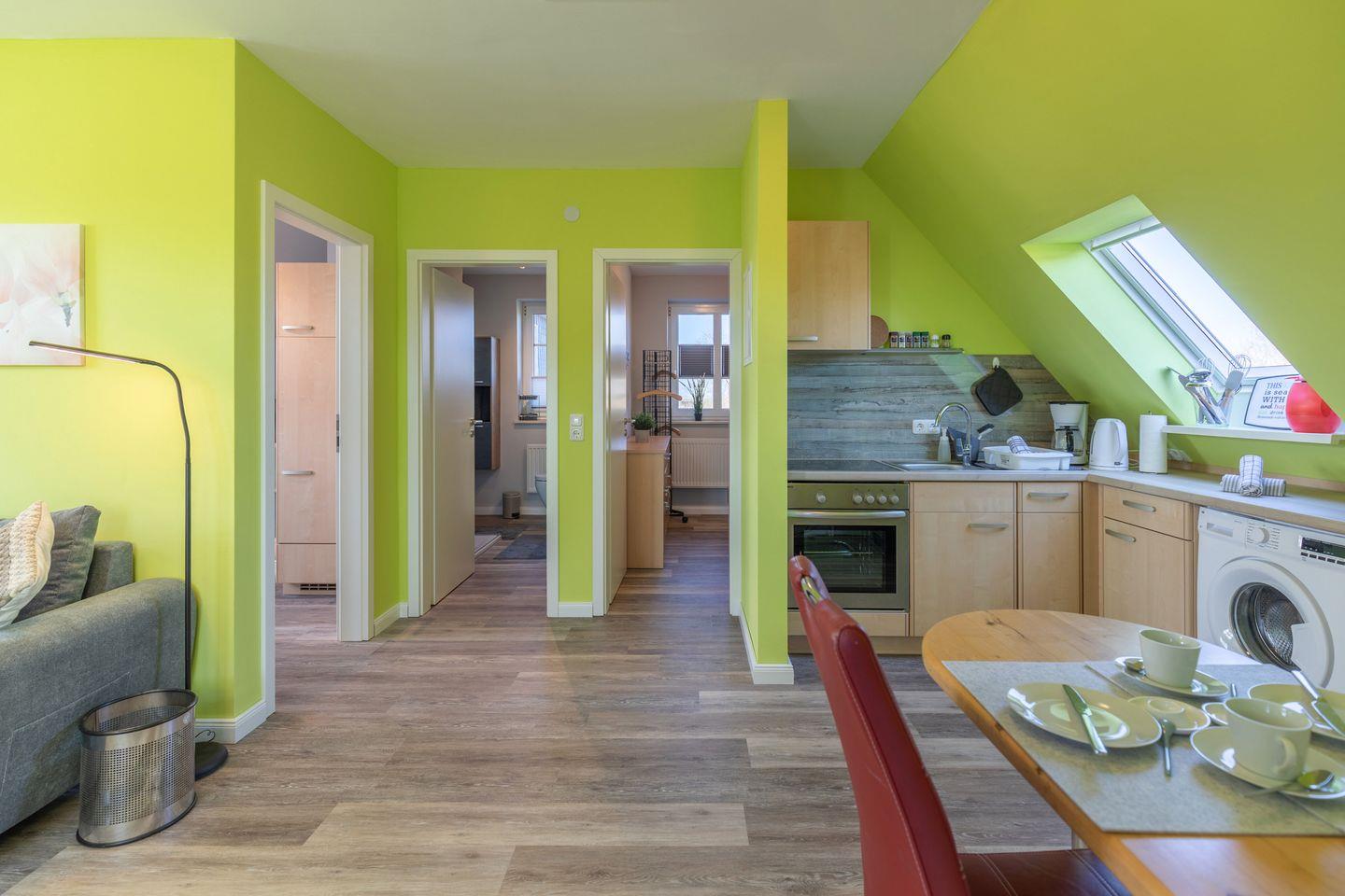 Die Wohnung ist modern und geschmackvoll eingerichtet und erstreckt sich über eine Fläche von 45 m². Sie verfügt über ein gemütliches Schlafzimmer, das für bis zu zwei Personen ausgelegt ist, sowie ein komfortables Wohnzimmer, in dem Sie die Zeit gemeinsam verbringen können. Der offene Essbereich ist ein weiterer einladender Ort, um gesellige Abende zu verbringen. Die gesamte Wohnung ist rauchfrei und allergikergeeignet, sodass sich auch Gäste mit speziellen Bedürfnissen wohlfühlen können.