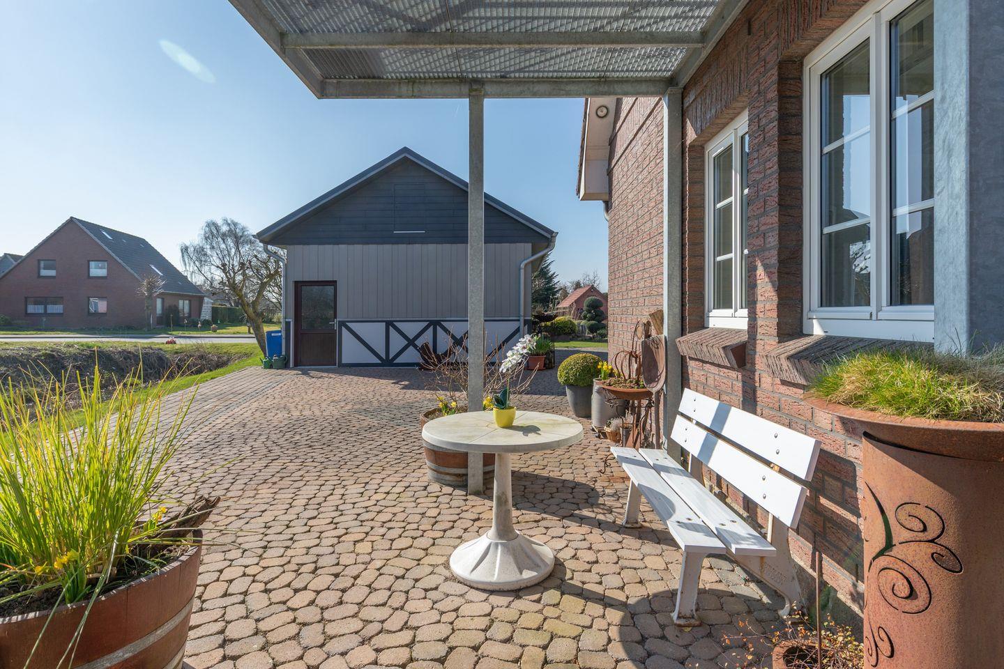Außenbereich und Gartenmöbel laden zum Verweilen ein. Genießen Sie die Sonne auf der Terrasse und nutzen Sie den Gasgrill für gesellige Grillabende mit Familie und Freunden. Ein Sonnenschirm und Gartenmöbel sind vorhanden, sodass Sie im Freien ausgiebig entspannen können.