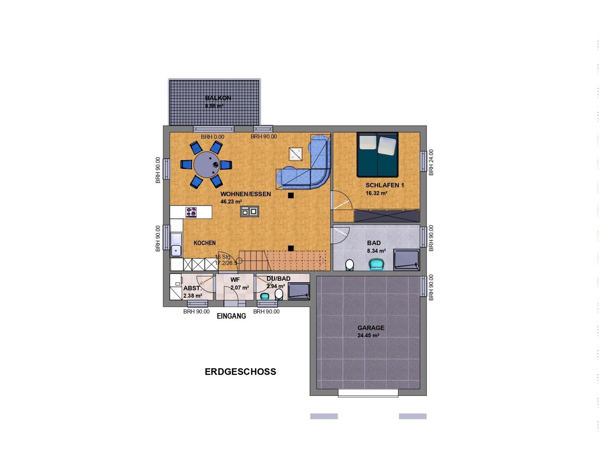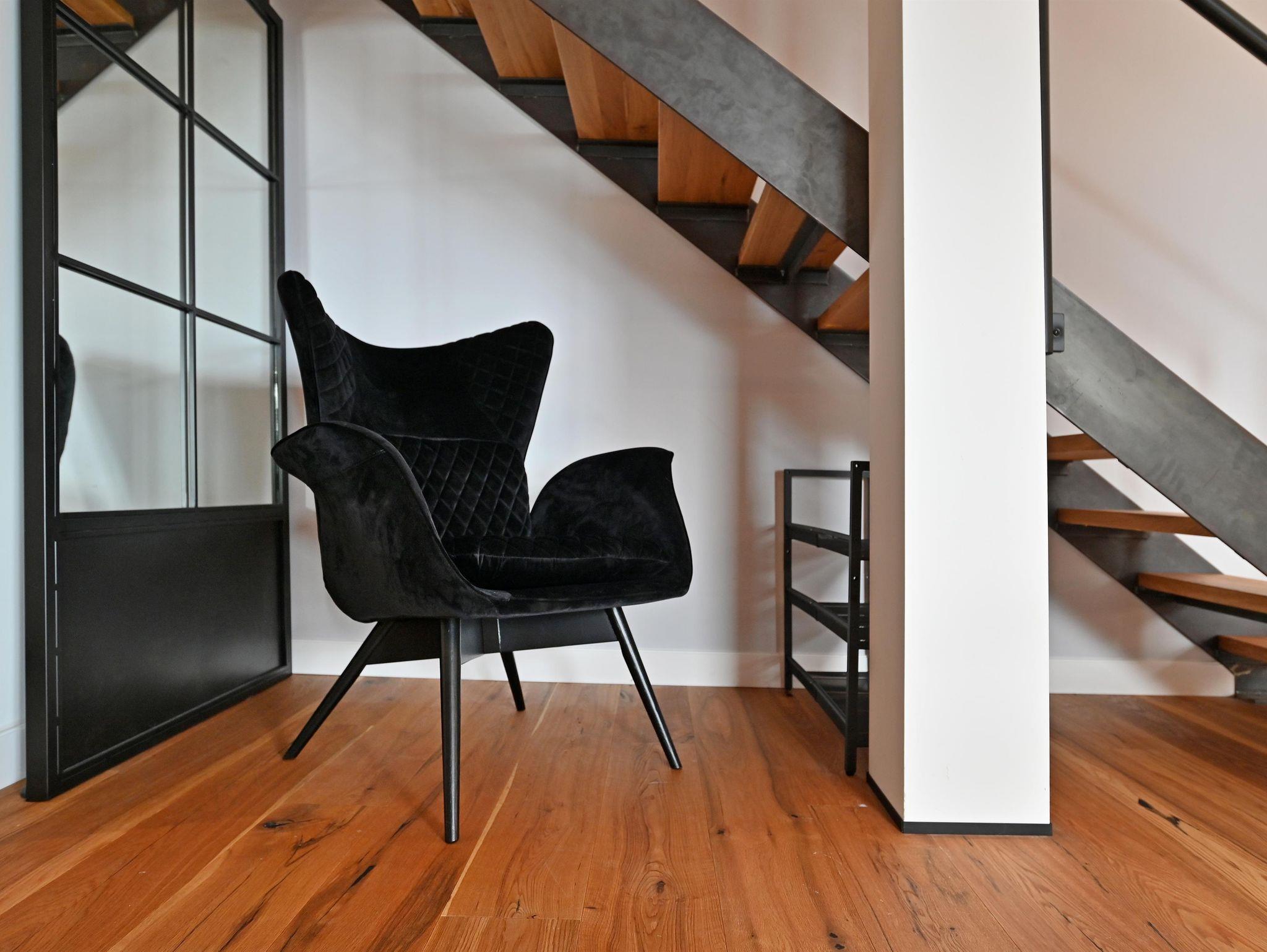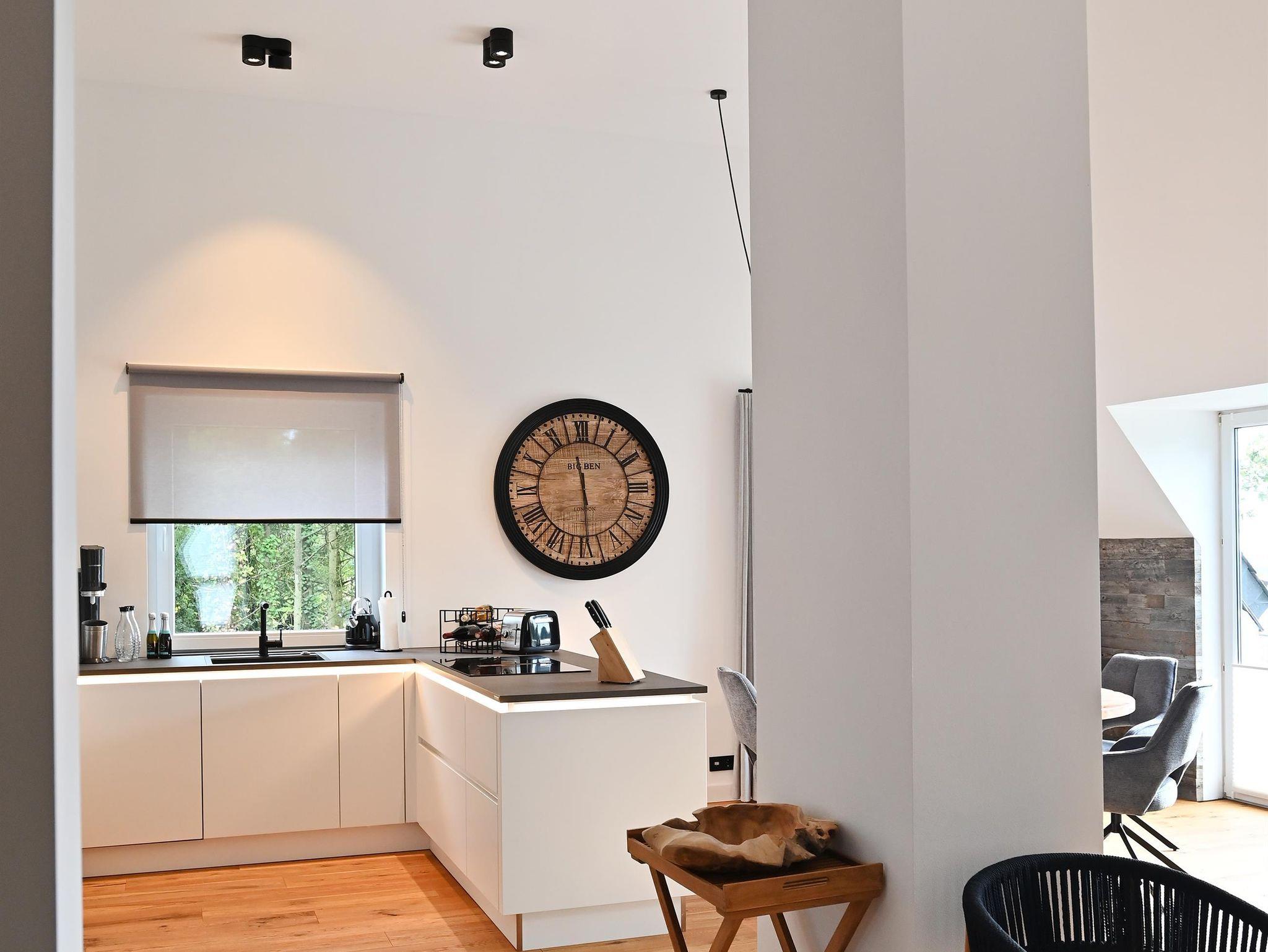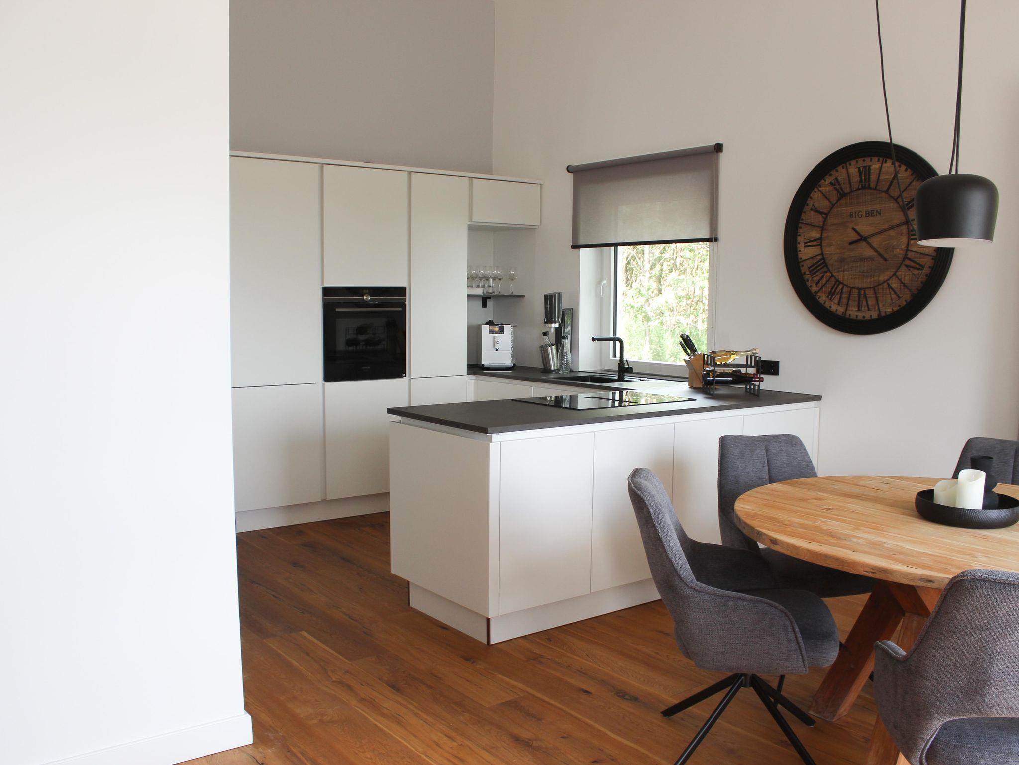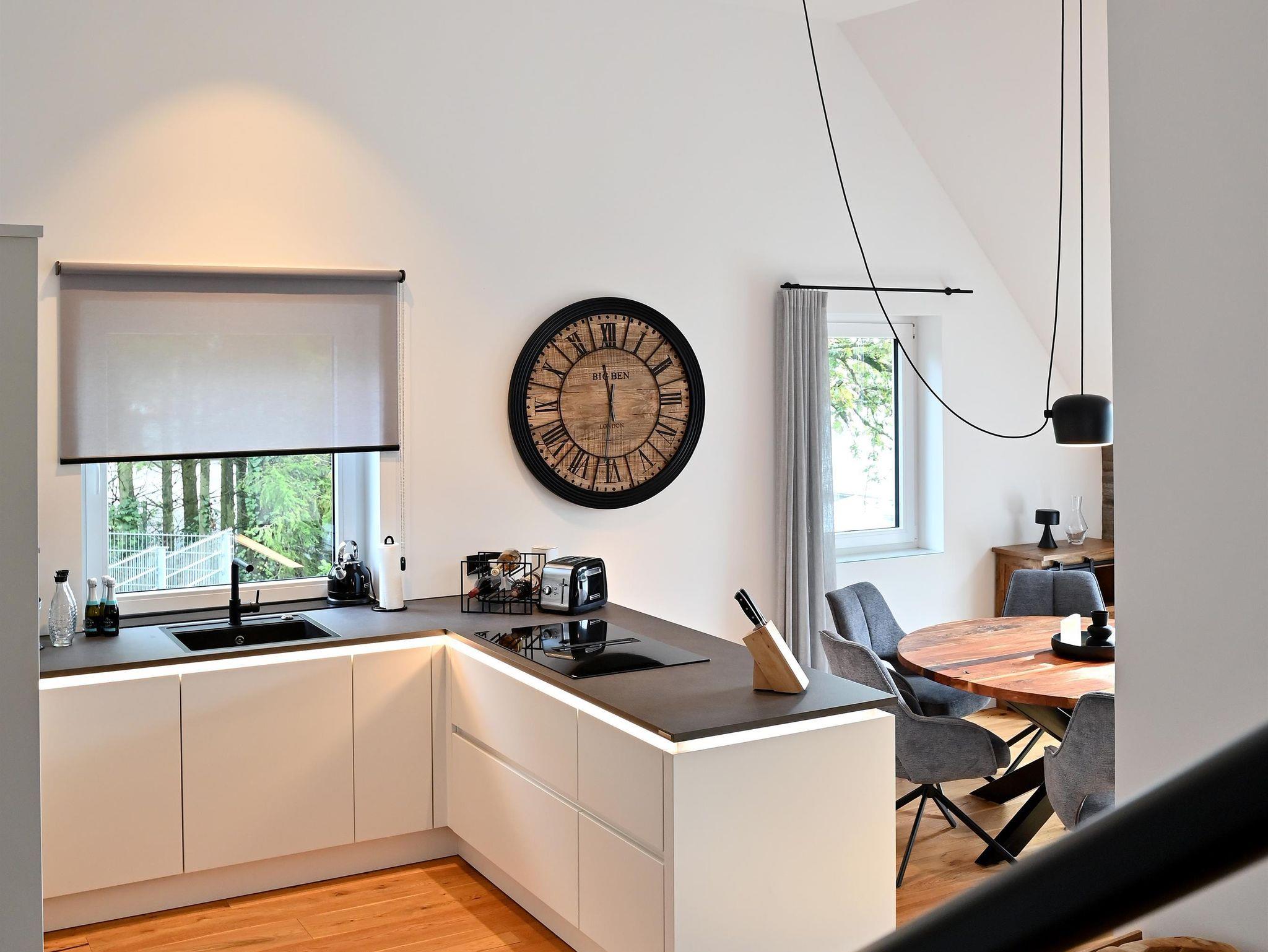 Die moderne Küche lädt zum ausgiebigen Kochen ein, der runde Esstisch bietet Platz für sechs Personen und ist ideal für gemeinsame Mahlzeiten. Echtholzböden und -türen verleihen der Wohnung eine warme Atmosphäre. Praktische Annehmlichkeiten wie Waschmaschine und Trockner sind ebenfalls vorhanden.