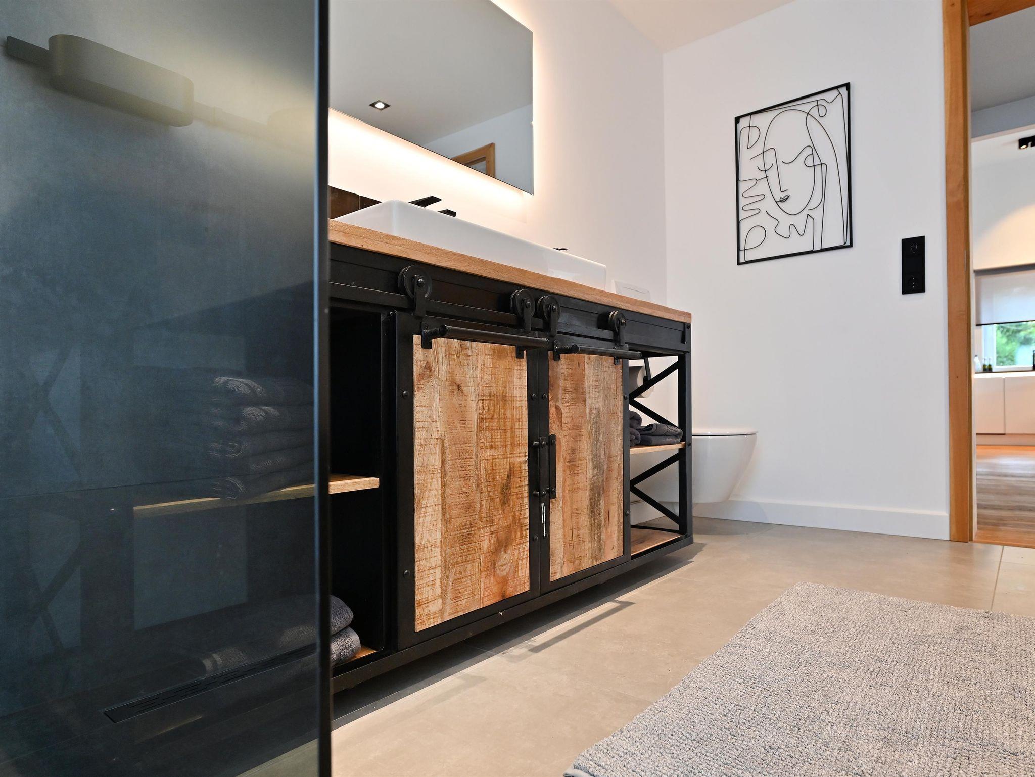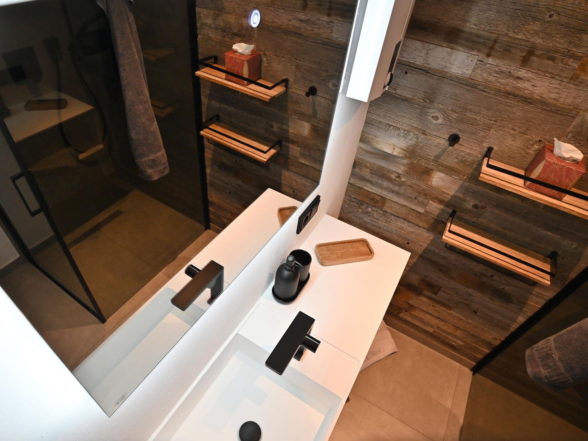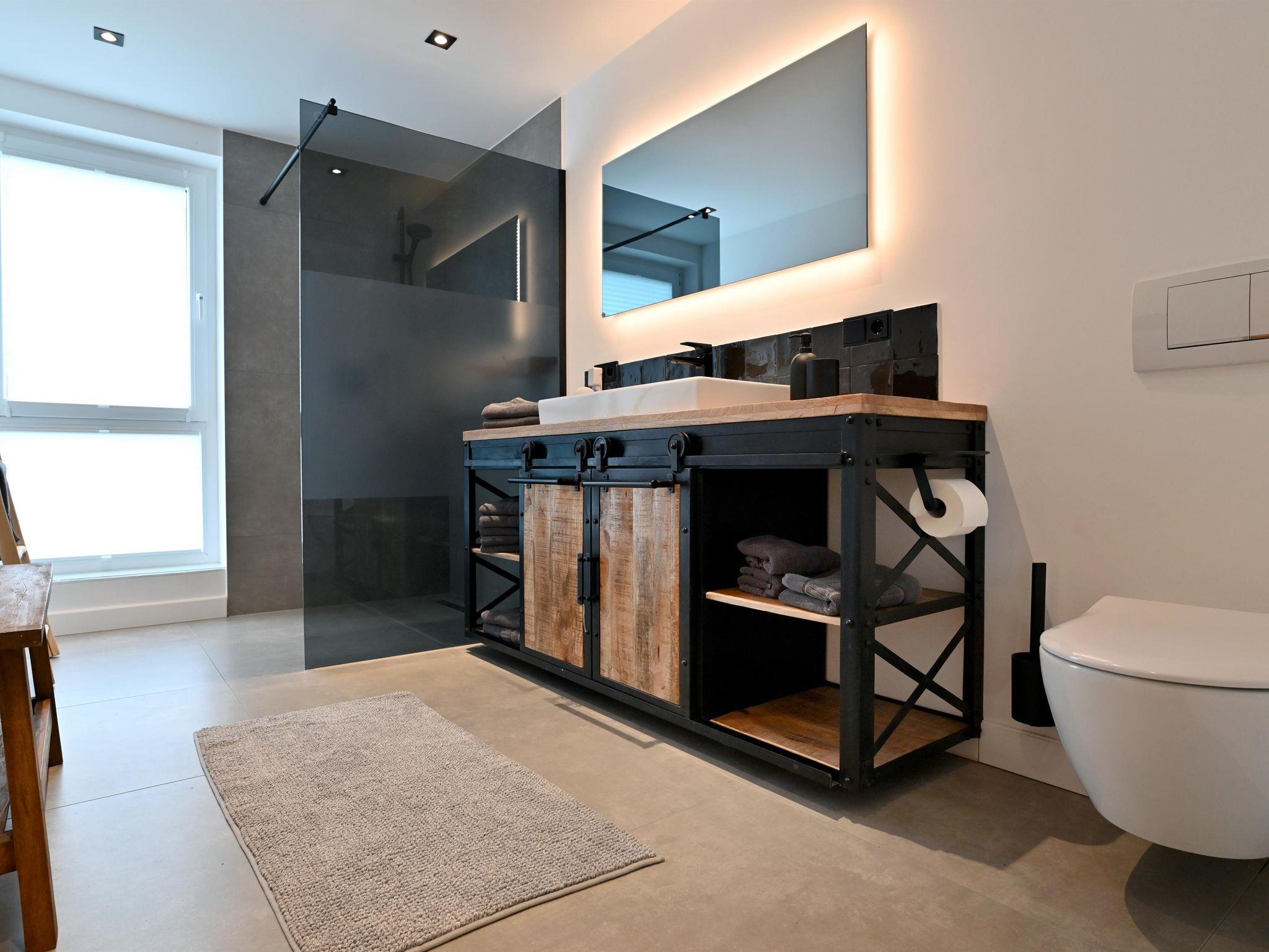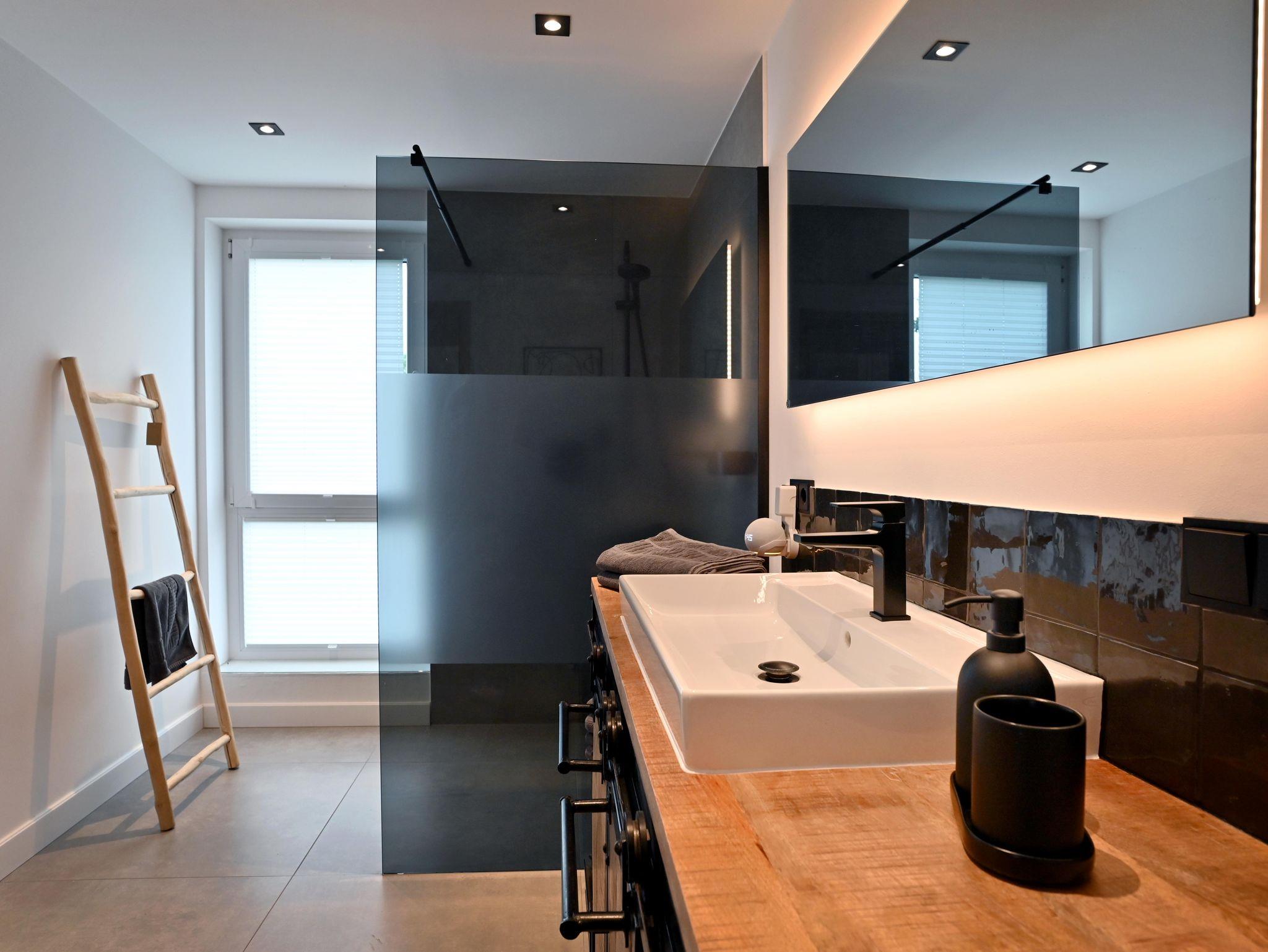 Zwei Bäder mit ebenerdiger Dusche und Infarot Spiegel